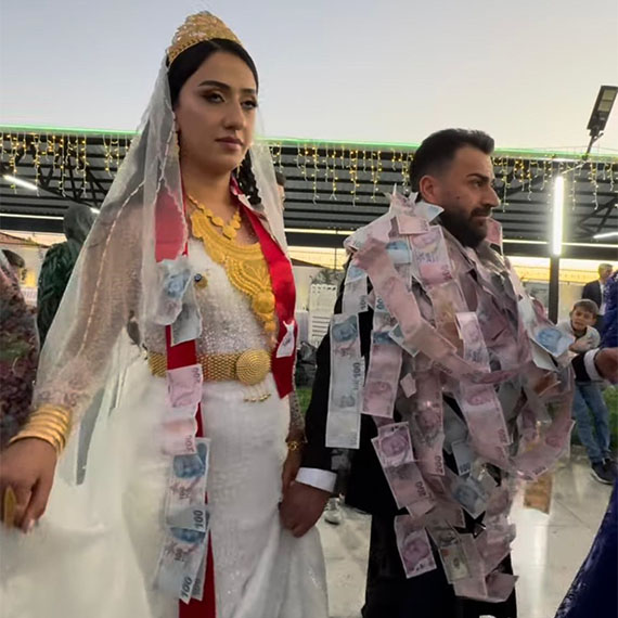 Van’da Ezdinan aşiretine mensup iş adamı Üzeyir Tekçe ile Pinyanişi aşiretinden Hasret Bilici hayatını birleştirdi. Çiftin Van’daki kır düğününe, aşiret liderleri, kanaat önderleri, STK başkanları, iş adamları, gelin ve damadın yakınlarından oluşan yaklaşık 7 bin kişi katıldı. Düğün için 200 koyun kesildi, davetlilere kavurma, pirinç pilavı ve cacık ikram edildi. Takı töreninin 5 saat sürdüğü düğünde, damada 10 milyon TL, geline ise yaklaşık 4 kilo altın takıldı. Takılan parayı yaklaşık 25 kişi sayarken, gelin Hasret Bilici’nin üzerindeki takıları taşımakta zorlandığı görüldü. Davetliler, gelin ve damatla birlikte halay çekti, söylenen Kürtçe şarkılar eşliğinde saatlerce oynadı.