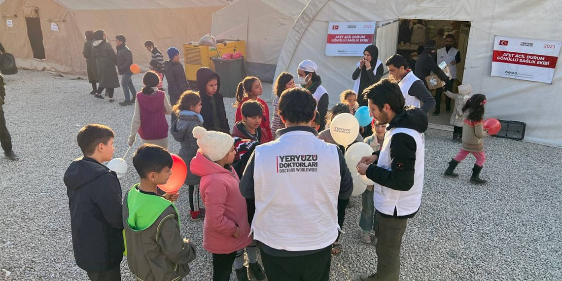 Ortopedi ve jinekoloji alanlarındaki acil vakaların hizmet verebilen hastanelerde ameliyatlarını gerçekleştiren Türk gönüllü hekimler ani doğum yapan ya da uzuv kaybı yaşamak üzere olan depremzedelerin hayata tutunmasını sağladı. Yeryüzü Doktorları kriz anında medikal desteğinin yanı sıra insani yardım malzemelerini ihtiyaç sahiplerine ulaştırırken, tedarik ağıyla ilaç desteğini sağladı. Aynı zamanda depremin afetzedeler üzerindeki psikolojik etkilerini azaltmak amacıyla kurulan psikososyal destek çadırlarında bir yıl boyunca uzman psikologlar eşliğinde çocuklara ve yetişkinlere yönelik çalışmalar sürdüren dernek, etkinliklerle birlikte hem grup hem bireysel görüşme seansları gerçekleştirdi.