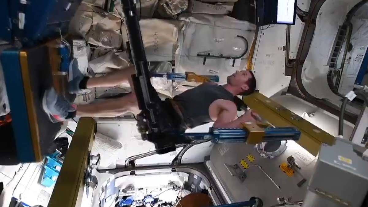 ISS’nin astronot ekibinde bulunan Fransız astronot Thomas Pesquet, uzay istasyonunda yer çekimsiz ortamda sağlıklı kalabilmek için yaptığı egzersizden bir bölüm paylaştı. Pesquet görüntüyle birlikte paylaştığı mesajında, “Kas geliştirme, uzaydan. Uzay egzersizi” ifadelerini kullandı.