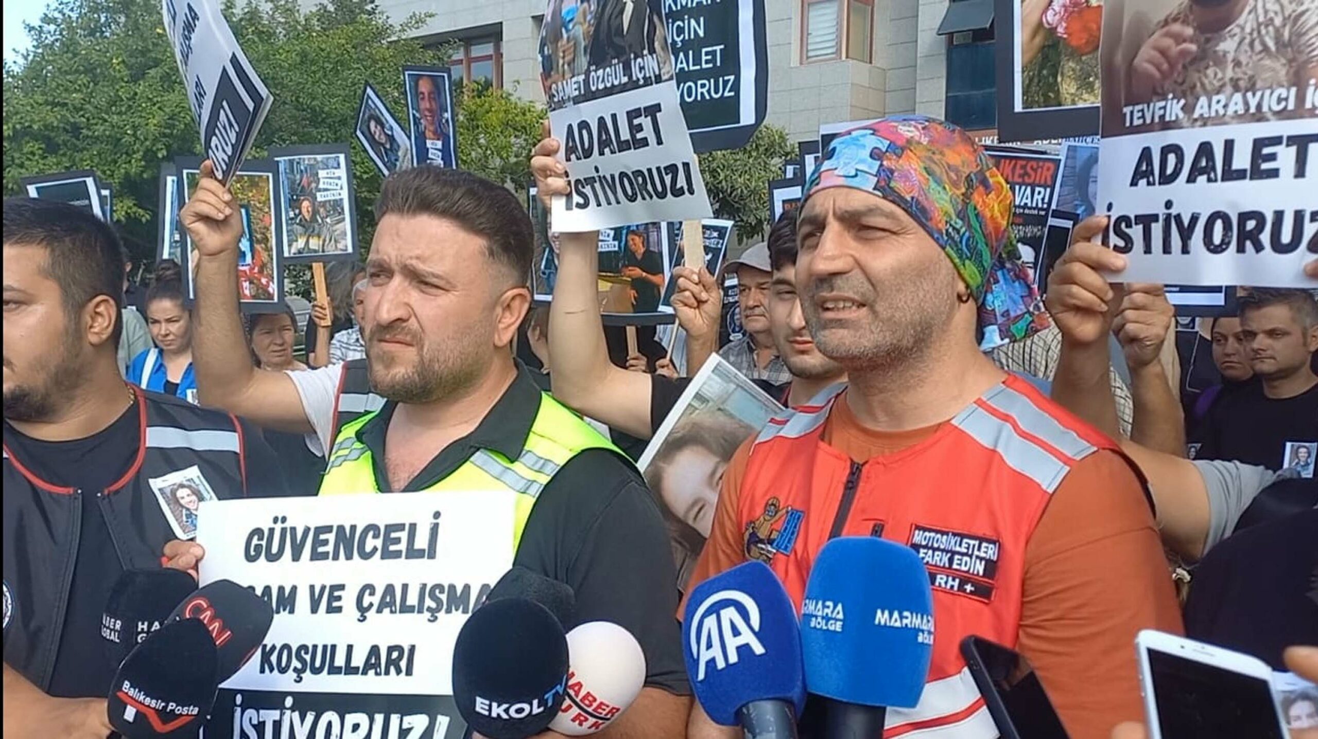 Ailesi onun görüntülerini izlemeye dayanamadı. Biz de dayanamadık. O yüzden burada konuşurken gerçekten çok zorlanıyorum. Çünkü bugün aynı zamanda Ankara’da Samet Özgül davası görülüyor. O da üniversiteli, kurye arkadaşımızdı. 2 yıl önce 3 trafik magandası tarafından boğazından bıçaklanarak öldürüldü ve ailesi 2 yıldır adalet arıyor. Biz de bugün Ata Emre’nin adaletini aramaya geldik. Bu bizim ilk duruşmamız. Ama Ata bizim ilk kaybımız değil. 2022’de en az 58 arkadaşımızı kaybettik. 2023’te en az 68. 2024’ün ilk 6 ayında 30 arkadaşımızı kaybettik. Biz her gün ölüyoruz. Dövizlerimizde yazıyor, biz tehlikeli meslek yapıyoruz ama henüz çok tehlikeli meslekler arasında değiliz” ifadelerini kullandı.