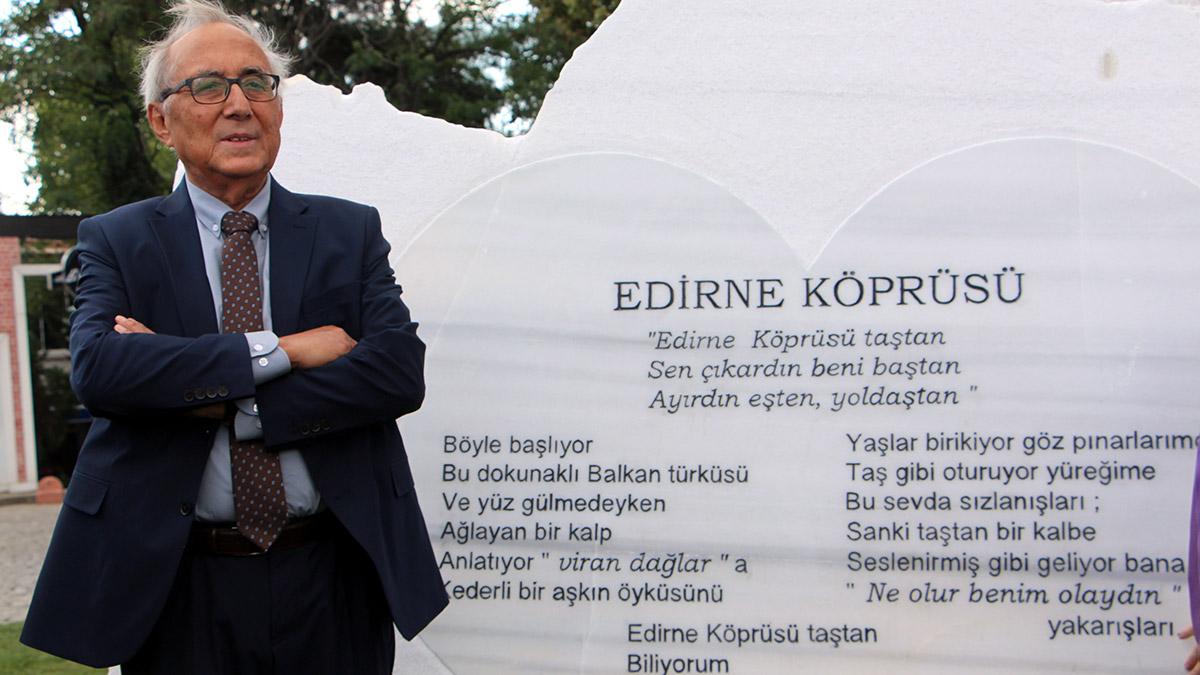 Edirne’de, Türk edebiyatının önemli şairlerinden Ataol Behramoğlu’nun ‘Edirne Köprüsü’ şiiri için Meriç Nehri’nden geçen tarihi Mecidiye Köprüsü’nün girişine kitabe oluşturuldu.