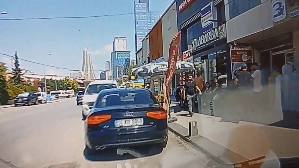 Tartışmanın büyümesinin ardından ismi öğrenilemeyen kişi kadına yumrukla saldırdı. Çevredekilerin araya girerek kadını kurtardı. O anlar bir sürücünün araç kamerasına saniye saniye yansıdı.