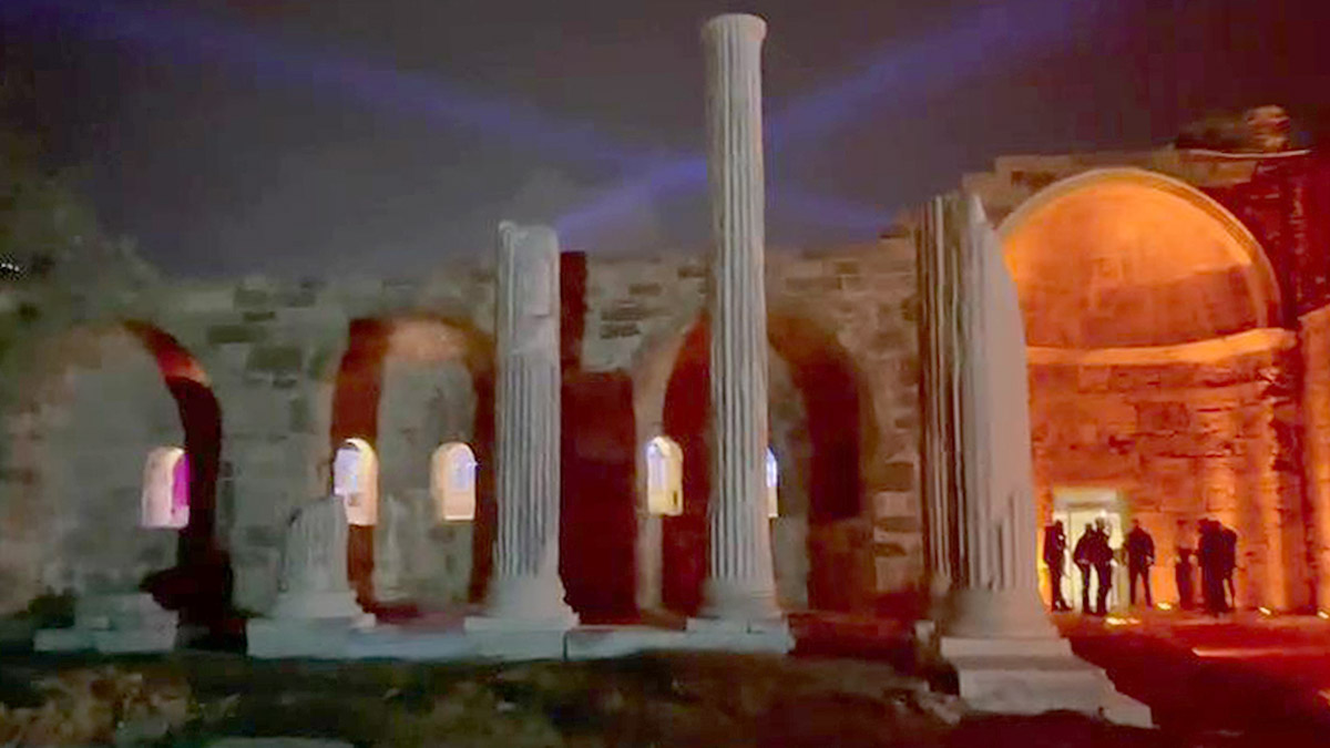 Kazı çalışması devam eden ve kısmen sütunlarının kaldırıldığı Athena Tapınağı’nın yanındaki özel mülkte açılışı yapılan gece kulübüne müşteriler, giriş kapısı olarak kullanılan tarihi kalıntıların önünde kurulan x-ray cihazından geçerek içeri girdi. Girişe, işletme sahipleri tarafından özel ışıklandırma da yapıldı.
