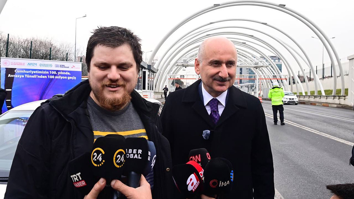 Ulaştırma ve Altyapı Bakanı Adil Karaismailoğlu, Avrasya Tüneli Kontrol Merkezi’nde Avrasya Tüneli’nde gerçekleştirilen çalışmalara ilişkin açıklama yaptı. Açıklamanın ardından Avrasya Tüneli’nden geçen 100 milyonuncu aracın sahibine bir ay ücretsiz kullanım hakkı hediye edildi.