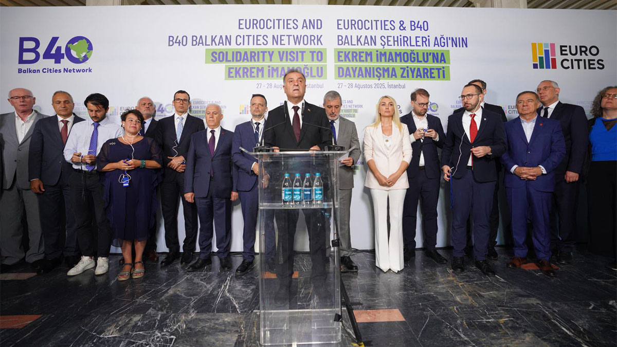 Toplantı sonrası konuşma yapan İBB Başkanvekili Nuri Aslan, “19 Mart’ta, Ekrem İmamoğlu‘nun haksız yere hapse atılmasıyla doruk noktasına ulaşan ülkemiz ve tarihimiz ilgili talihsiz gelişmeleri ele aldık. Eurocities &B40 şehirlerinden belediye başkanları ilk günden beri yanımızda oldular. Avrupalı meslektaşlarımıza demokrasi mücadelemize verdikleri destek için teşekkür etmek istiyorum. Bu ziyaret aramızdaki dayanışmanın en somut göstergesidir” şeklinde konuştu.