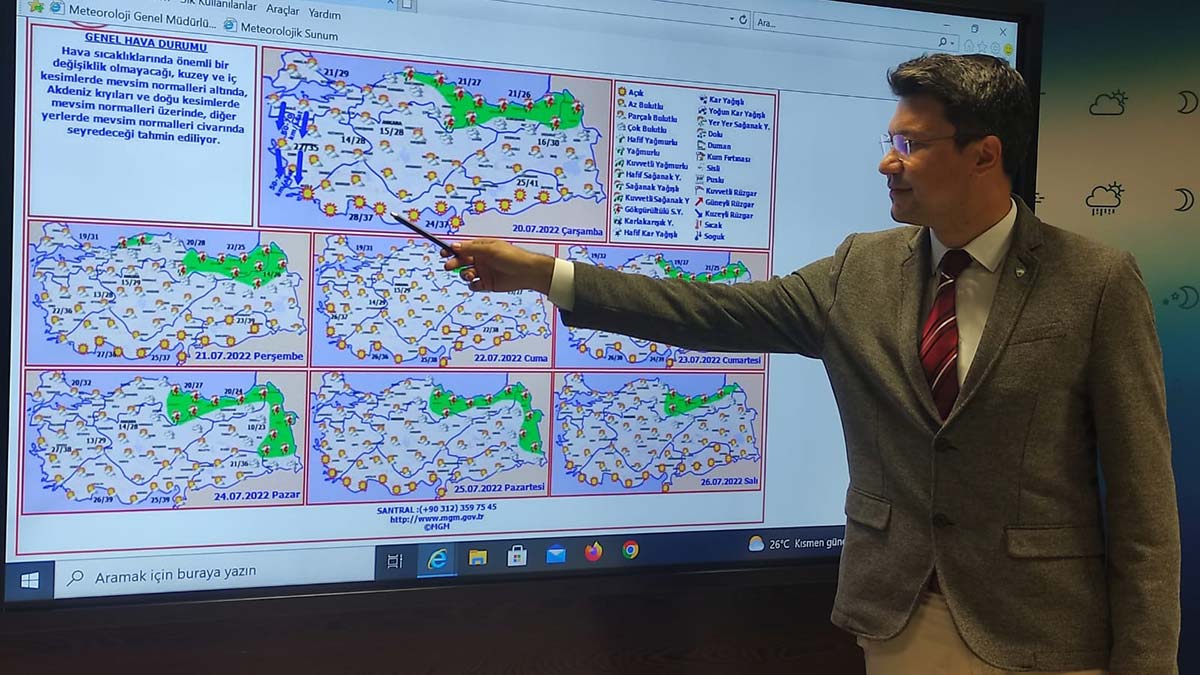 Yaz sezonuna ilişkin değerlendirme yapan Tekin, “Önümüzdeki aya baktığımızda iç ve güney kesimlerde hava, sıcaklık anlamında mevsim normallerinin üzerinde seyredecek. Yağış anlamında ise özellikle iç kesimlerin mevsim normallerinin altında bir yağış almasını tahmin ediyoruz” dedi. Tekin, vatandaşlara güneş ışınlarının dik geldiği 11.00- 16.00 saatleri arasında zorunlu kalmadıkça dışarıya çıkmamaları önerisinde bulundu.