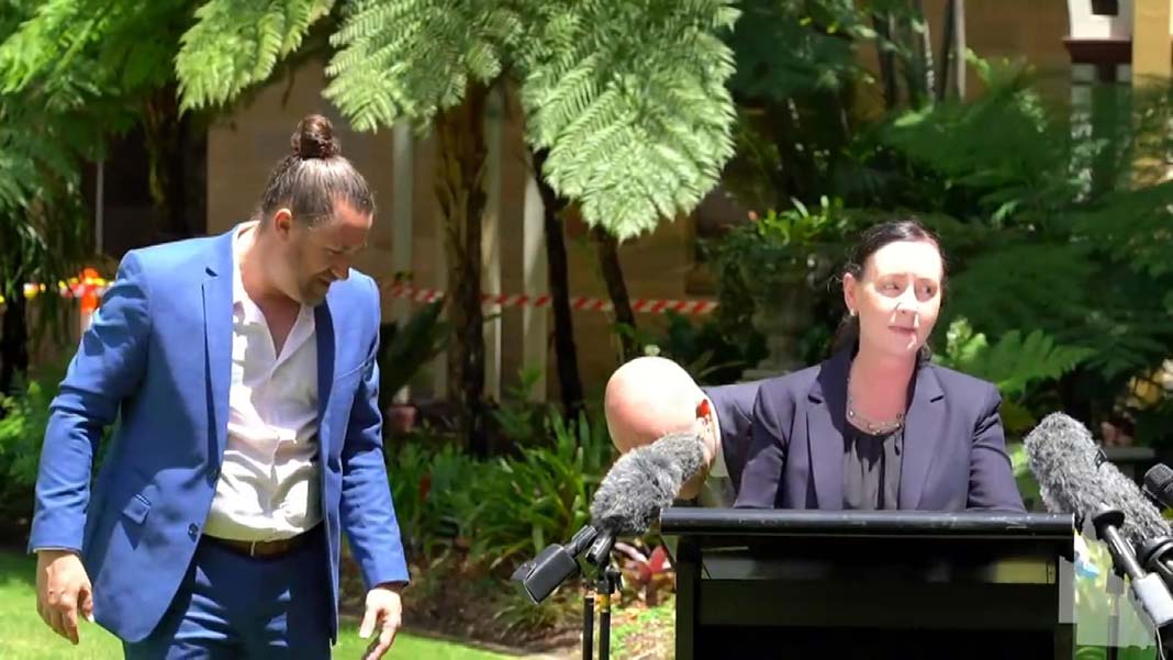 Avustralya’da Queensland Eyalet Sağlık Bakanı Yvette D’ath, eyaletin Brisbane kentinde dün Covid-19 durumuna ilişkin basın açıklaması yaptı. Bakan D’ath açıklama yaptığı sırada üzerine örümcek tırmandı. Bakanın üzerindeki örümceği fark eden gazetecilerden biri ‘Üzerinizde örümcek var’ diyerek bakanı uyardı.