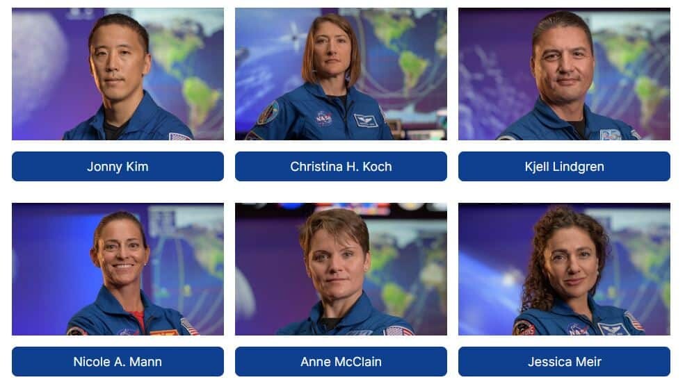 NASA tarafından açıklanan astronotların isimleri şöyle sıralandı: Joseph Acaba, Kayla Barron, Raja Chari, Matthew Dominick, Victor Glover, Warren Hoburg, Jonny Kim, Christina Koch, Kjell Lindgren, Nicole A Mann, Anne McClain, Jessica Meir, Jasmin Moghbeli, Kate Rubins, Frank Rubio, Scott Tingle, Jessica Watkins, Stephanie Wilson.