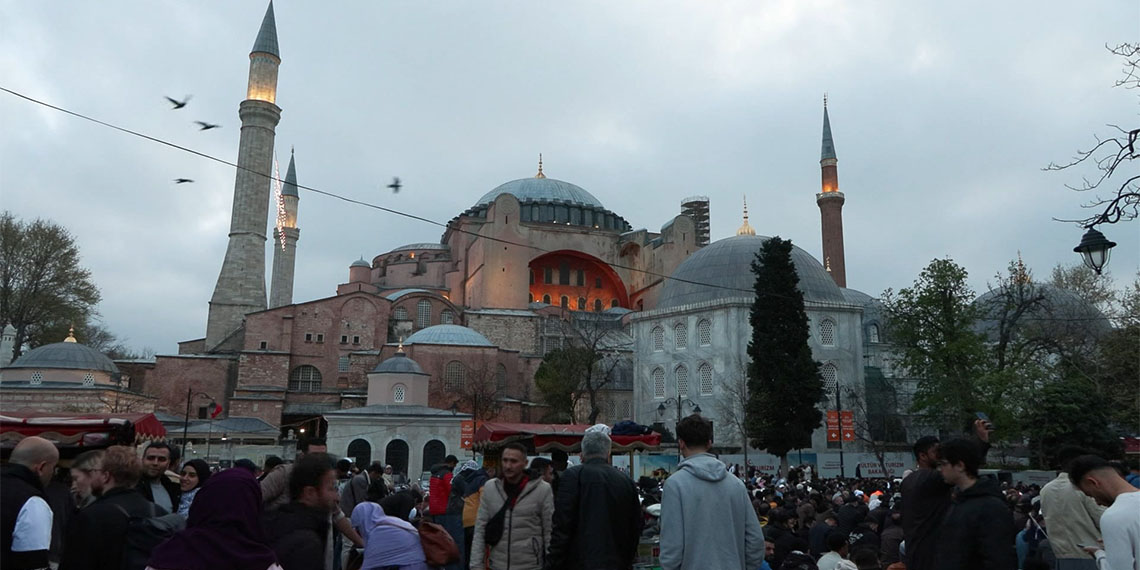 Bayram namazını Ayasofya Camii’nde kılmak isteyen vatandaşlar, sabahın erken saatlerinde camiye akın etti. Caminin içerisi namaz vaktinden önce dolarken, içeride yer bulamayan vatandaşlar ise seccadeleriyle caminin avlusunda saf tuttu.