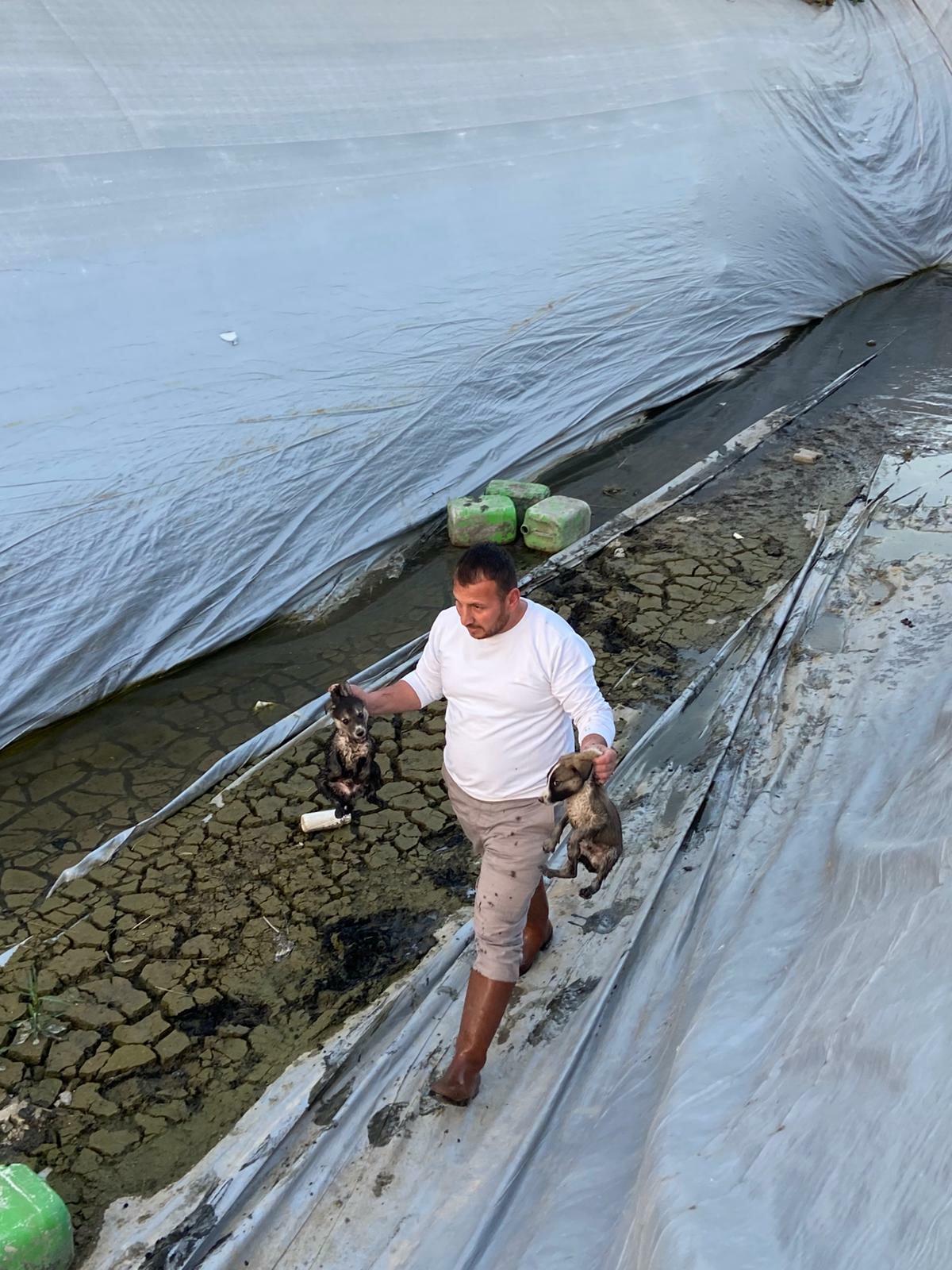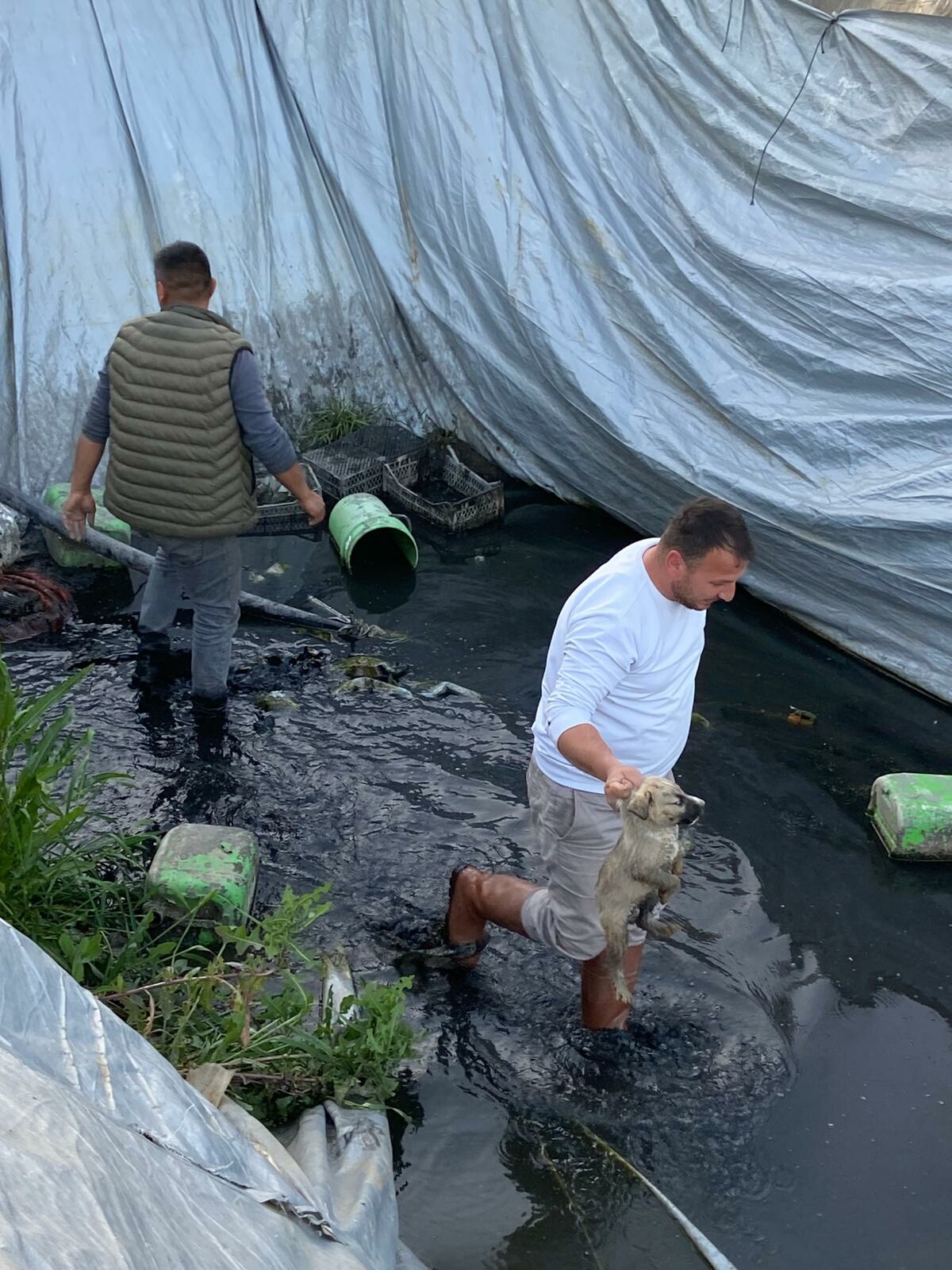 Aydın’ın Sultanhisar ilçesinde, çilek sulama havuzuna düşen 5 yavru köpek kurtarıldı.
