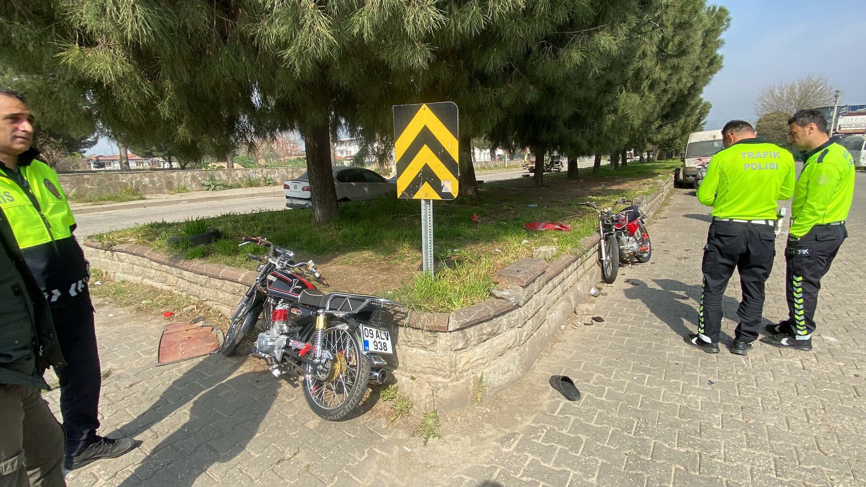 Kaza, saat 11.30 sıralarında Yeni Sanayi Mahallesi Mehmet Özalp Bulvarı’nda meydana geldi. A.G. (14) yönetimindeki 09 Ns 629 plakalı motosiklet, önündeki dönüş için manevra yapan Y.A. (17) yönetimindeki 09 Alv 938 plakalı motosiklete çarptı. Her iki motosiklet de yola savruldu. Kask takmadıkları belirlenen Y.A. ile A.G ve arkasında yolculuk yapan O.T., yaralandı.