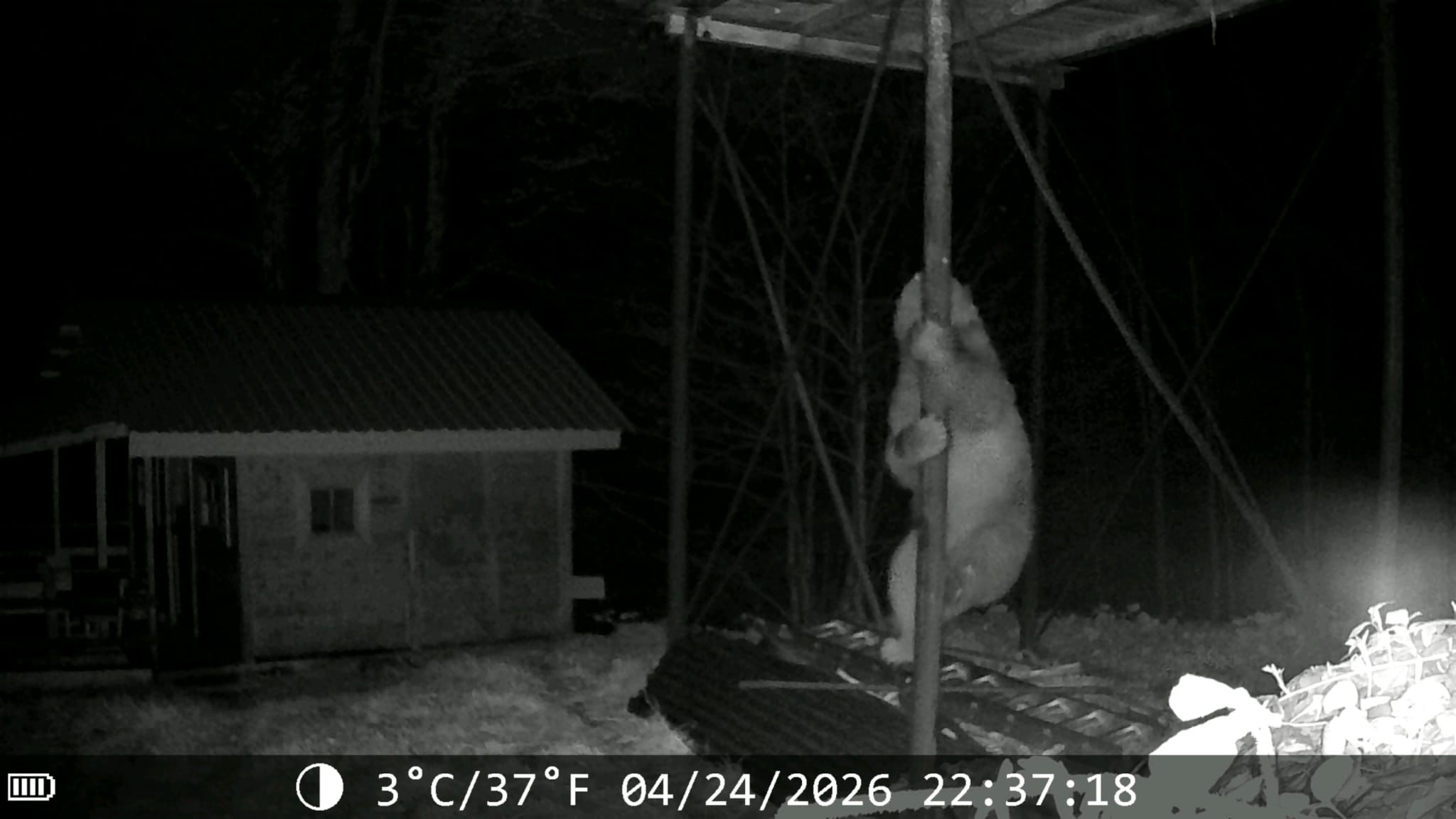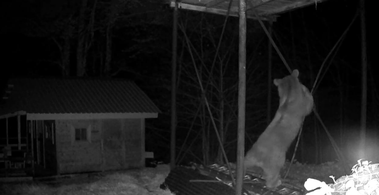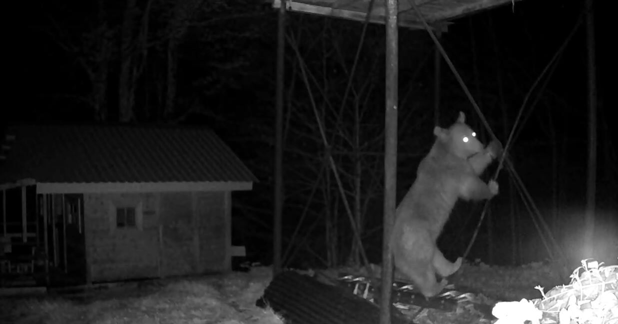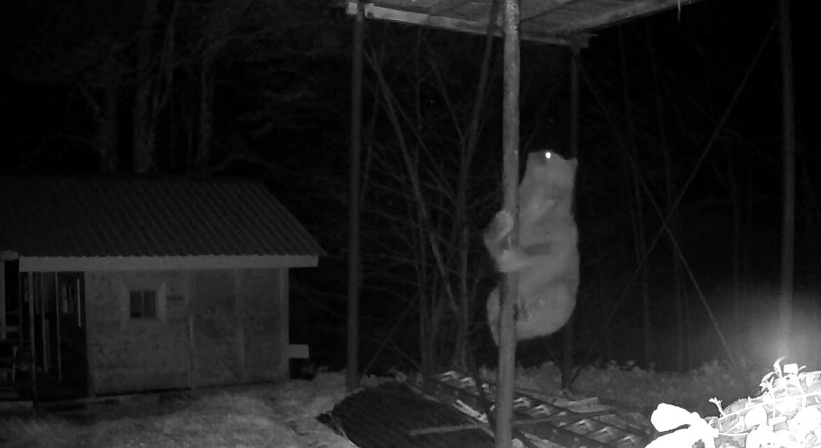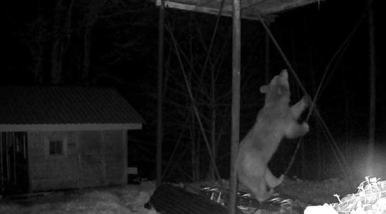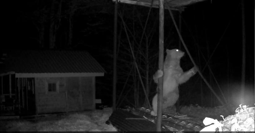 Rize’nin Hemşin ilçesinde, kış uykusundan uyanan bozayı, indiği köyde Şefik İnce’nin yerden yüksekte bulunan kovanlarındaki ballara ulaşmak için demir direğe tırmanmaya çalıştı. O anlar fotokapan kamerasına yansıdı.