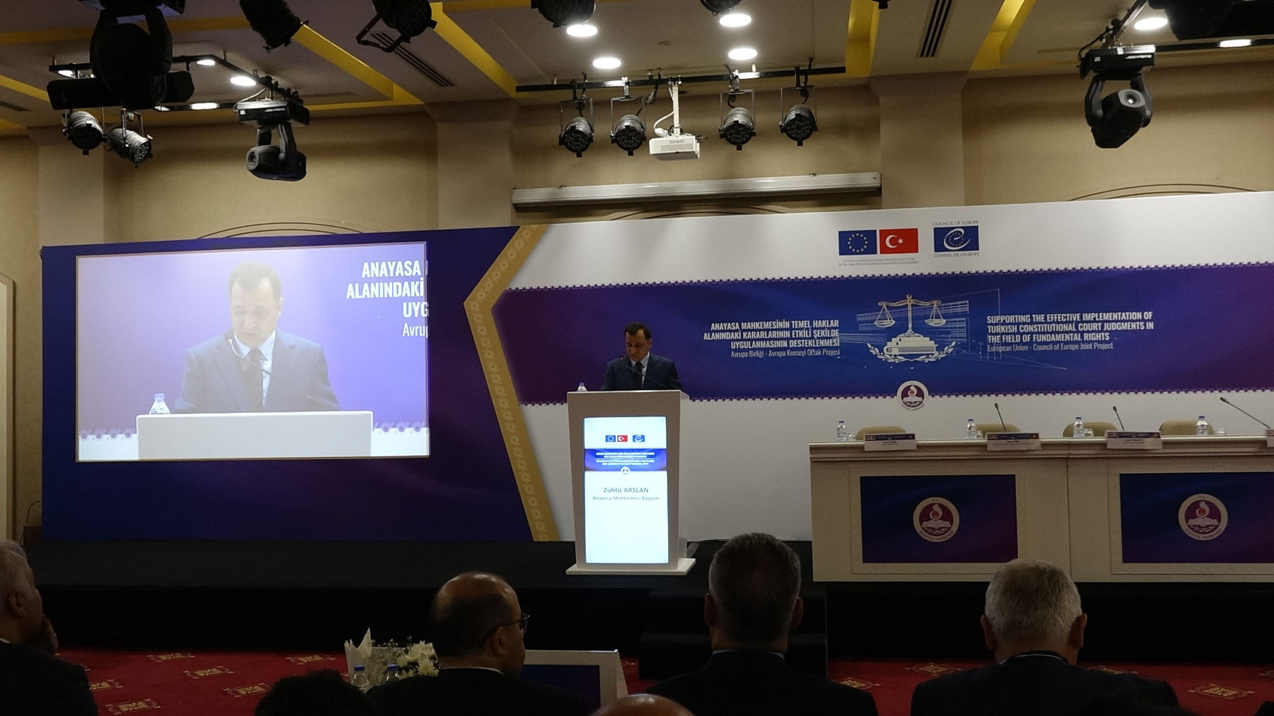 AYM Başkanı Arslan, Trabzon’da otelde düzenlenen ‘Anayasa Mahkemesinin Temel Haklar Alanındaki Kararlarının Etkili Bir Şekilde Uygulanmasının Desteklenmesi’ konulu panele katıldı.