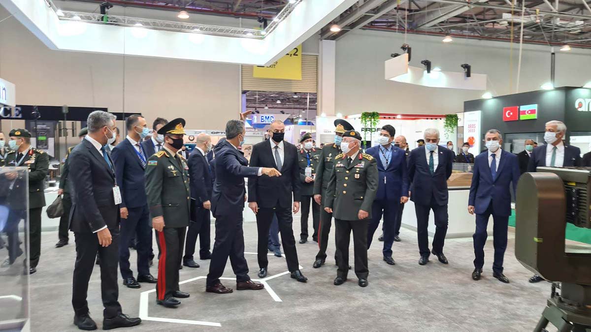 Azerbaycan Cumhurbaşkanı İlham Aliyev, fuarda ASELSAN’ın standını ziyaret etti. Aliyev’in yanı sıra yanı sıra Savunma Bakanı Orgenerel Zakir Hasanov, Savunma Sanayii Bakanı Orgeneral Medet Guliyev, Hava Kuvvetleri Komutanı Korgeneral Ramiz Tahirov, Devlet Tehlikesizlik Hizmeti (DTX) Reisi Orgeneral Ali Nagiyev, Harici Keşfiyat Başkanı Orgeneral Orhan Sultanov, Nahcivan Ordu Komutanı Orgeneral Kerem Mustafaev..