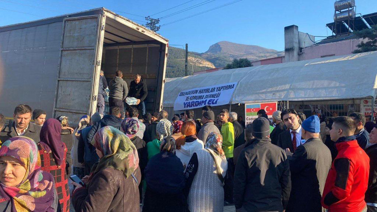 Azerbaycan-Türkiye kardeşliğini, güçlü ve koşulsuz birlikteliğini tüm dünyaya göstermek istediklerin de altını çizen Cavadov, “Şu anda 2 milyon TL değerinde en çok ihtiyaç duyulan gıda ve diğer ana maddelerin bulunduğu 4 büyük TIR ile; 10 adet akaryakıt jeneratörü, yetişkinler ve çocuklar için kışlık giysiler, kışlık botlar, yastık ve battaniyeler, su depoları, birçok temizleyici, antiseptik, çeşitli hijyen malzemeleri, çocuk bezi, 68 ton içme suyu, sünger yataklar, bin 400 kişilik kuru gıda paketi ve diğer gerekli malzemeler tarafımızca doğrudan bölgeye getirildi” açıklamasında bulundu.