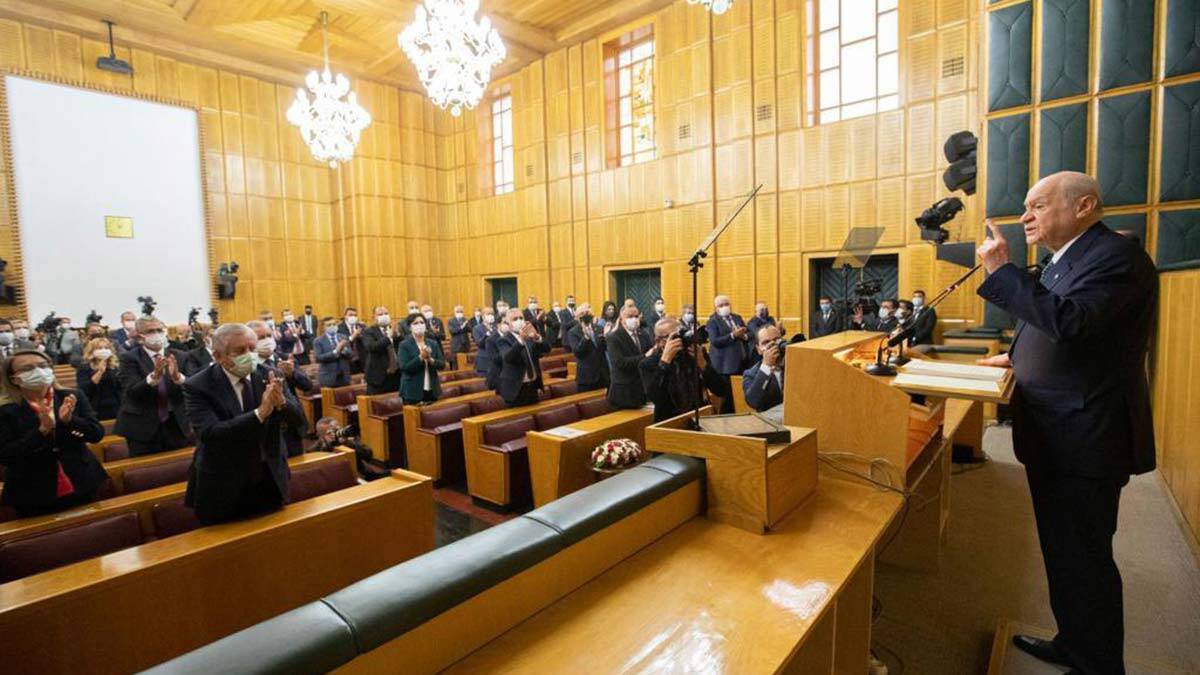 MHP Genel Başkanı Devlet Bahçeli, TBMM‘de partisinin grup toplantısında konuştu. Bahçeli, MHP’nin Cumhur İttifakı’yla birlikte Türkiye’nin muazzam sinerjisi, akıl ve gönül enerjisi olduğunu belirterek, “TBMM’nin bu yeni yasama yılında Cumhur İttifakı olarak Türkiye’mize yapacağımız, sağlayacağımız ve kazandıracağımız pek çok yasal düzenleme, insanımızı huzur, refah ve esenliğe kavuşturacak yine pek çok sayıda adım ve kararımız olacaktır. Bildiğiniz üzere, parti olarak eylül ayıyla birlikte sahadaki temas ve çalışmalarımızı yoğunlaştırdık. Siyasi faaliyetlerimizi ülkemizin her köşesine nüfus ve sirayet edecek şekilde yaygınlaştırdık. Salgın şartlarını titizlikle dikkate alarak düzenlediğimiz bölge istişare toplantılarımız hamdolsun canlı, coşkulu, düzenli, disiplinli, verimli şekilde geçmiş ve nihayetlenmiştir. Milliyetçi Hareket Partisi yaparsa en iyisini yapar. Nitekim davamızın haklarını layıkıyla savunacağız. Vatan ve millet sevdasının bayraktarı olacağız” dedi.