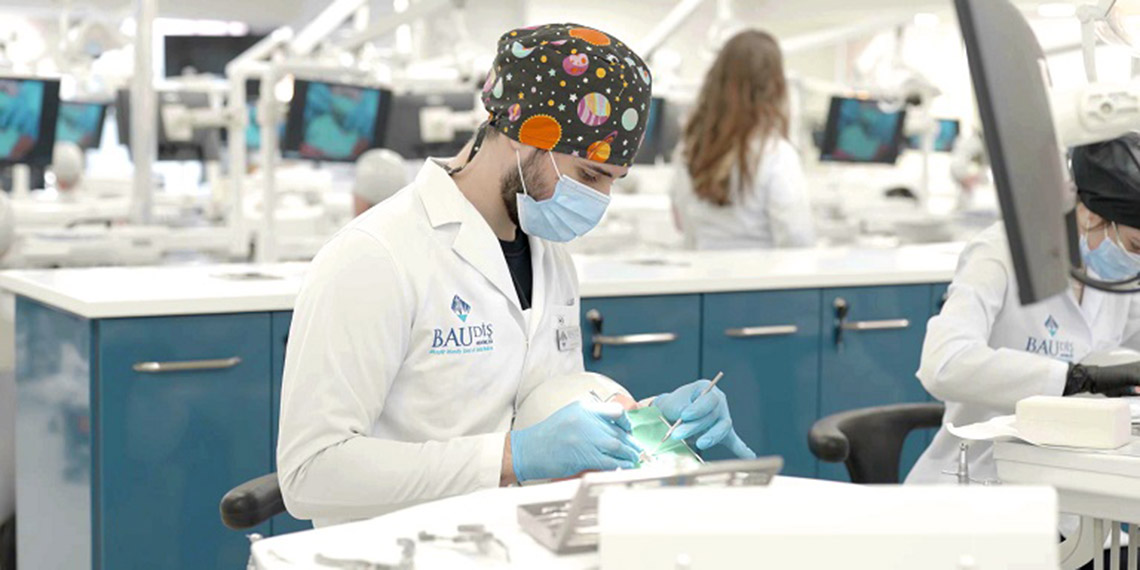 Uluslararası tanınırlığı olan bir merkez olma misyonu ile yola çıkan BAU Diş Hekimliği Fakültesi’nde öğrencilerinin teorik eğitimlerinin yanı sıra klinik uygulama eğitimlerinin de gerçekleştirilmesine olanak tanınıyor. Öğrenciler mesleki bilgi ve becerilerini klinik ve mesleki beceri laboratuvarı ve diş protez teknolojileri laboratuvarında geliştirdikleri gibi fakülte bünyesinde bulunan Diş Hekimliği Simülasyon Laboratuvarı’nda yapay hastalar üzerinde gerekli tedavi işlemlerini yapabilme, Sanal Gerçeklik ve Haptik Simülasyon Laboratuvarı’nda gerçek dokunma hissi vererek diş dokularının yoğunluğunu deneyimleyebilme gibi olanaklardan faydalanma fırsatı buluyor.