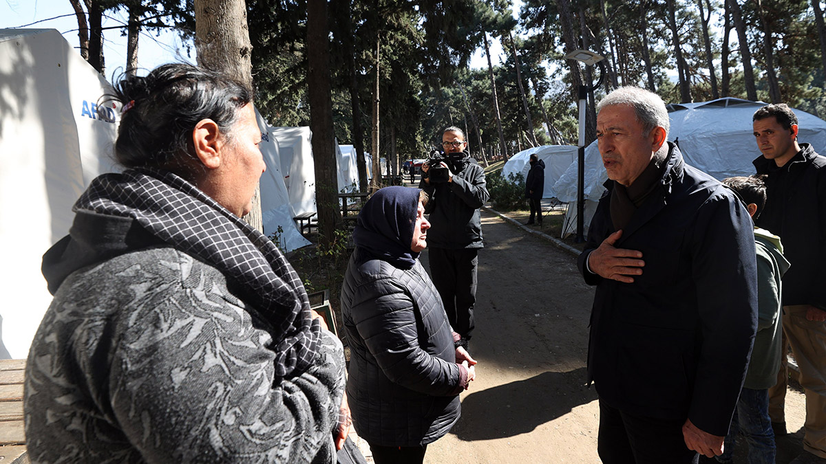 Milli Savunma Bakanı Hulusi Akar, Hatay’da çadır kentte kalan depremzedelerle bir araya geldi.
