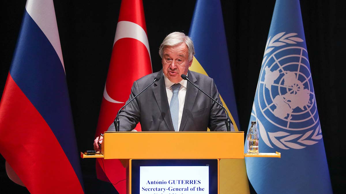 Birleşmiş Milletler Genel Sekreteri Antonio Guterres’in, Türkiye ziyaretinde ilk durağı İstanbul Zeytinburnu’ndaki Zeyport Limanı oldu. Guterres daha sonra Müşterek Koordinasyon Merkezi’ni ziyaret etti. Milli Savunma Bakanı Hulusi Akar ve Birleşmiş Milletler Genel Sekreteri Antonio Guterres ortak basın açıklaması yaptı.