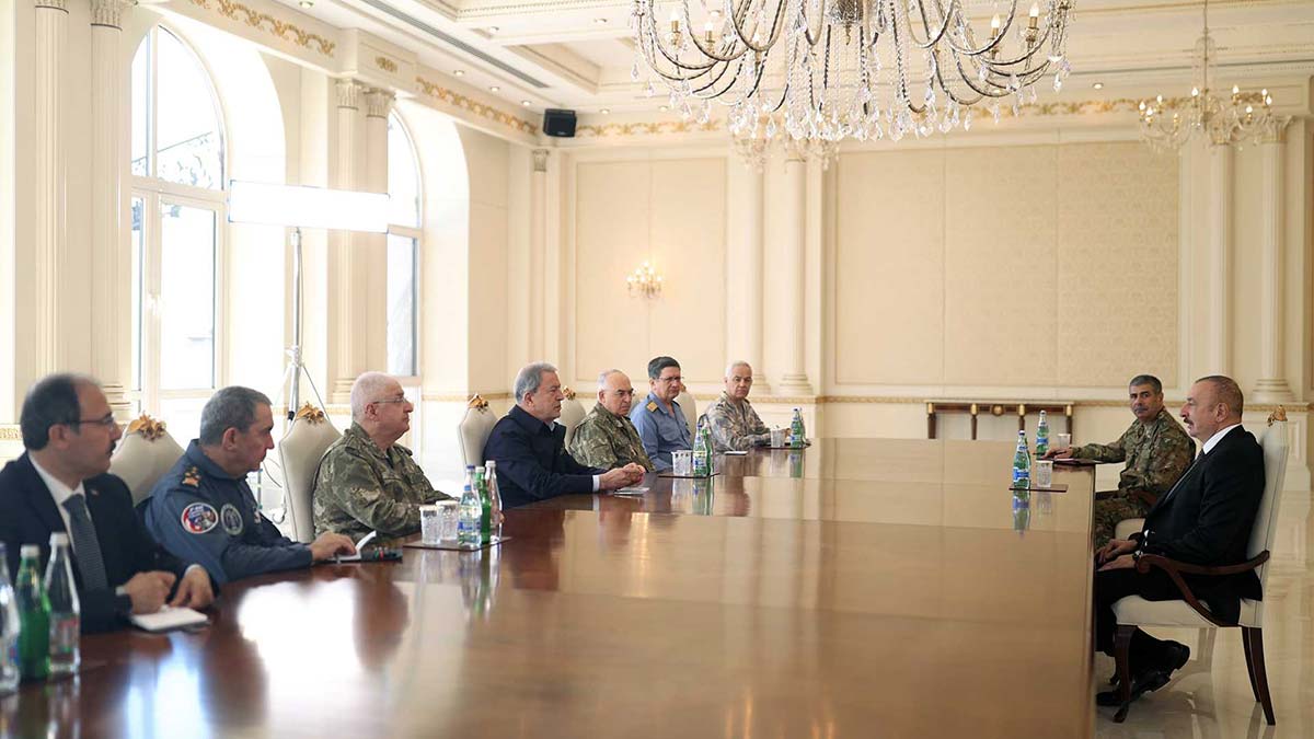 Azerbaycan Cumhurbaşkanı İlham Aliyev, Milli Savunma Bakanı Hulusi Akar ve beraberindeki TSK komuta kademesini kabul etti.
