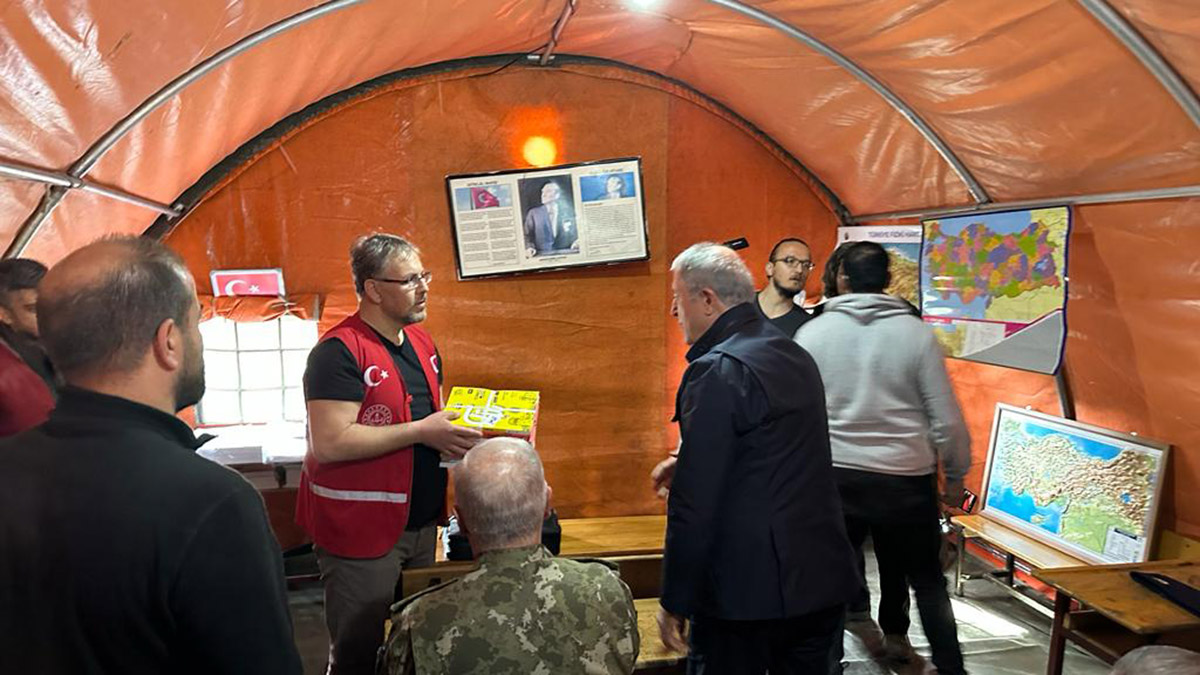 Türk Silahlı Kuvvetleri olarak depremin olduğu ilk andan itibaren Mehmetçik’in süratle vatandaşın yanına koştuğunu vurgulayan Akar, “Önce arama kurtarma çalışmaları, daha sonra barınma, yeme içme sorunları ve buna bağlı olarak da her konuda elimizdeki imkanlarımız neyse bunların hepsini yerine getirmek için çalışmalarımızı büyük bir fedakarlıkla, büyük bir azimle sürdürdük, sürdürüyoruz. Vatandaşımızın yanındayız, milletimizin yanındayız. İlk andan itibaren Mehmetçik yaraların sarılması için gerçekten gece gündüz demeden, büyük bir fedakarlıkla, azimle çalışmaları sürdürdü, sürdürüyor” ifadelerini kullandı.