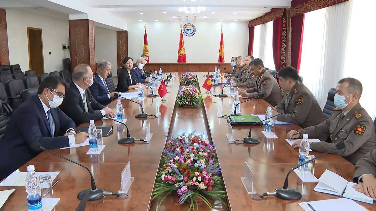 Kırgızistan’da Cumhurbaşkanı Sadır Caparov ve Savunma Bakanı Taalaybek Omuraliev ile görüştüklerini kaydeden Bakan Akar, “Öncelikli olarak Cumhurbaşkanı Caparov’a Sayın Cumhurbaşkanımızın selamlarını ilettik. Görüşmelerimizde kendi görüşlerimizi aktardık, çalışmalarımız hakkında bilgi verdik. Onlar da görüşlerini, çalışmalarını paylaştılar. Son derece yapıcı, samimi görüşmeler oldu. Kırgızistan bizim kardeşimiz.