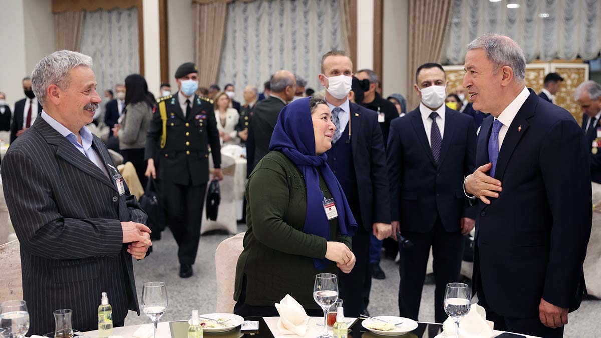 Bakan Akar beraberinde Genelkurmay Başkanı Orgeneral Yaşar Güler, Kara Kuvvetleri Komutanı Orgeneral Musa Avsever, Deniz Kuvvetleri Komutanı Oramiral Adnan Özbal, Hava Kuvvetleri Komutanı Orgeneral Hasan Küçükakyüz ve Bakan Yardımcıları ile şehit aileleri ve gazilerle Gazi Orduevi’nde düzenlenen iftarda bir araya geldi. Şehit yakınları, gaziler, muvazzafı ve emeklileriyle büyük bir aile olan Türk Silahlı Kuvvetlerinin kederde ve kıvançta bir ve bütün olduğunu vurgulayan Bakan Akar, “Şehitlerimiz, gazilerimiz Türk Silahlı Kuvvetlerimizin, asil milletimizin baş tacıdır” diye konuştu.