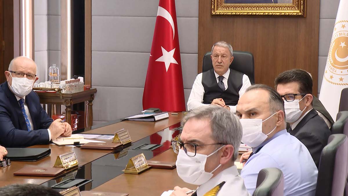 Bakan Akar başkanlığında Genelkurmay Başkanı Orgeneral Yaşar Güler, Kuvvet Komutanları, Bakan Yardımcısı Yunus Emre Karaosmanoğlu ve birlik komutanlarının katılımıyla gerçekleşen video konferans toplantısında, devam eden faaliyetlere ve sahadaki son duruma ilişkin bilgiler değerlendirildi. Dünyada ve bölgede önemli belirsizliklerin yaşandığını, yoğun bir dönemden geçildiğini vurgulayan Akar, “Türk Silahlı Kuvvetleri olarak ülkemizin, milletimizin egemenliği, bağımsızlığı, bekası, hak ve menfaatlerinin korunması ve kollanması için yurt içinde ve sınır ötesinde bize verilen görevleri en iyi şekilde yapmak için azim ve kararlılıkla çalışmaya devam ediyoruz” diye konuştu.