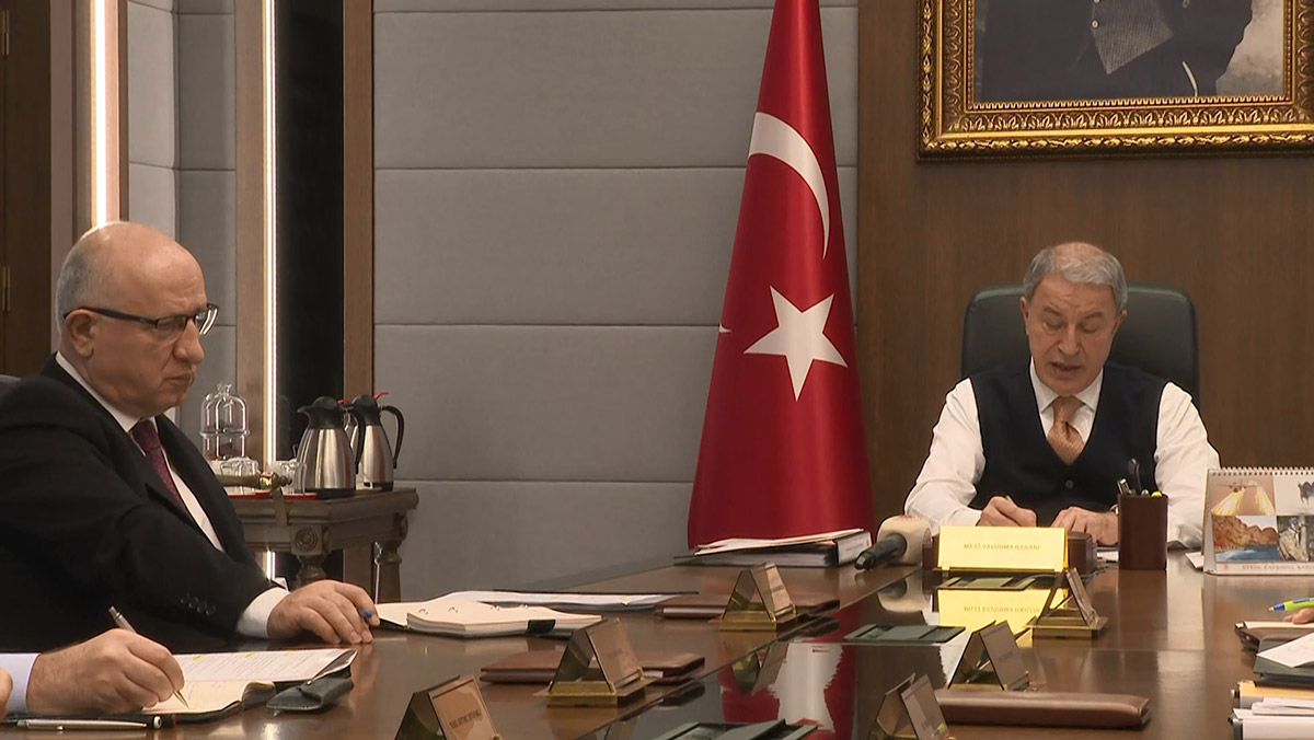 Bakan Akar başkanlığında, Türk Silahlı Kuvvetleri (TSK) komuta kademesi ve birlik komutanlarının katılımıyla video konferans toplantısı düzenlendi. Genelkurmay Başkanı Orgeneral Yaşar Güler, bakan yardımcıları Yunus Emre Karaosmanoğlu ve Şuay Alpay ile Kara Kuvvetleri Komutanı Orgeneral Musa Avsever, Deniz Kuvvetleri Komutanı Oramiral Ercüment Tatlıoğlu ve Hava Kuvvetleri Komutanı Orgeneral Atilla Gülan ile birlik komutanlarının katıldığı toplantıda Akar, faaliyetler ve sahadaki son duruma ilişkin bilgi aldı, talimatlar verdi.