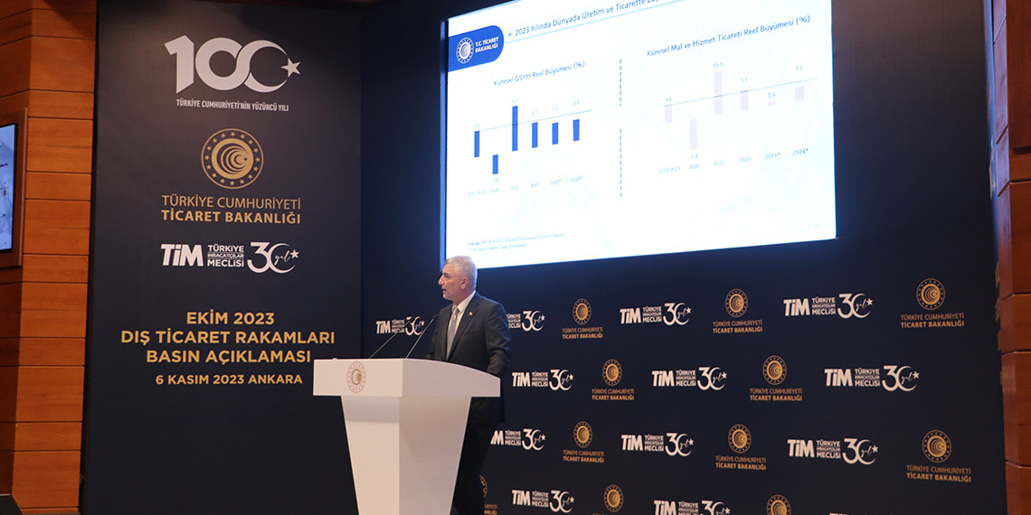 Ticaret Bakanı Ömer Bolat, bakanlıkta ekim ayı dış ticaret verilerine ilişkin basın toplantısı düzenledi. Bakan Bolat, 6 Şubat’taki deprem felaketinin büyüme ve ihracatta olumsuz etkilere neden olduğunu belirterek, “Ticari Araştırmalar Müdürlüğümüzün yaptığı etki analizlerine göre şubat- ekim adasındaki 9 ayda, 6 milyar dolarlık ihracat kaybımız var. Bütün zorluklara rağmen temmuz ayında başlayan ihracatımızdaki aylık yükseliş, ağustos ve eylül ayında devam etti. Ekim ayında da yükselişini sürdürdü. Ekim ayı ihracatımız, geçen yılın ekim ayına göre yüzde 7,4 oranında artarak 22 milyar 900 milyon dolara ulaşmıştır.