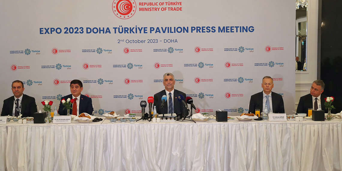 Ticaret Bakanı Bolat, Expo 2023 Doha kapsamında kurulan Türkiye pavilyonunda basın mensuplarıyla buluştu. Bakan Bolat, “Son 20 yılda büyük bir ekonomik gelişme gösteren, milli gelirini 4,5 kat artırıp 1 trilyon dolara yaklaşan ekonomisiyle dünyanın önemli büyük ekonomileri arasında yer alan, toplam ihracatını 254 milyar dolara ulaştıran Türkiye’mizin, hizmet ihracatını da 100 milyar doların üzerine çıkardık. Mal ve hizmet ihracatı olarak toplam 355 milyar dolarlık bir hacme ulaşan Türkiye’mizin, Katar ile yapacak daha birçok önemli ortaklıkları ve iş birlikleri, projeleri olduğunu memnuniyetle ifade etmek istiyorum.