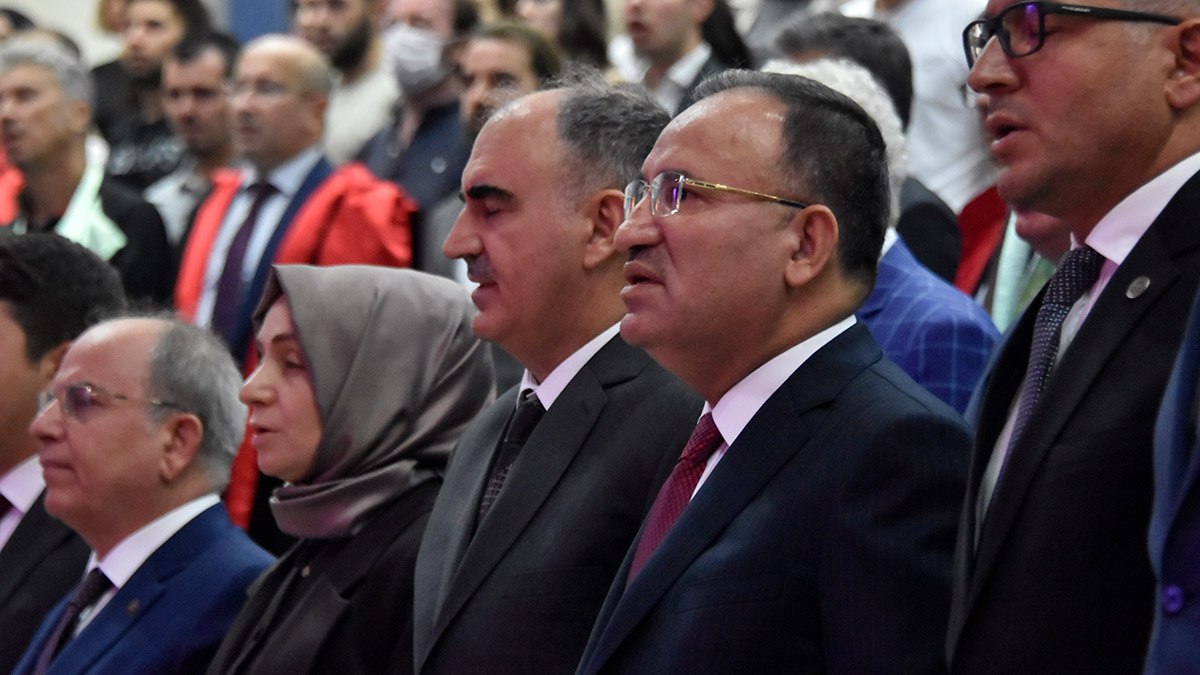 Adalet Bakanı Bekir Bozdağ, bugün Konya’da Selçuk Üniversitesi’nin 2022-2023 Akademik Yılı açılış törenine katıldı. Törende akademisyen ve öğrencilere seslenen Bakan Bekir Bozdağ, Türkiye’nin bir hukuk devleti olduğunu söyledi. Toplumun her yerindeki karar vericilerin adil olması sonucu, adaletin ayakta durabileceğini belirten Bozdağ, şunları söyledi: