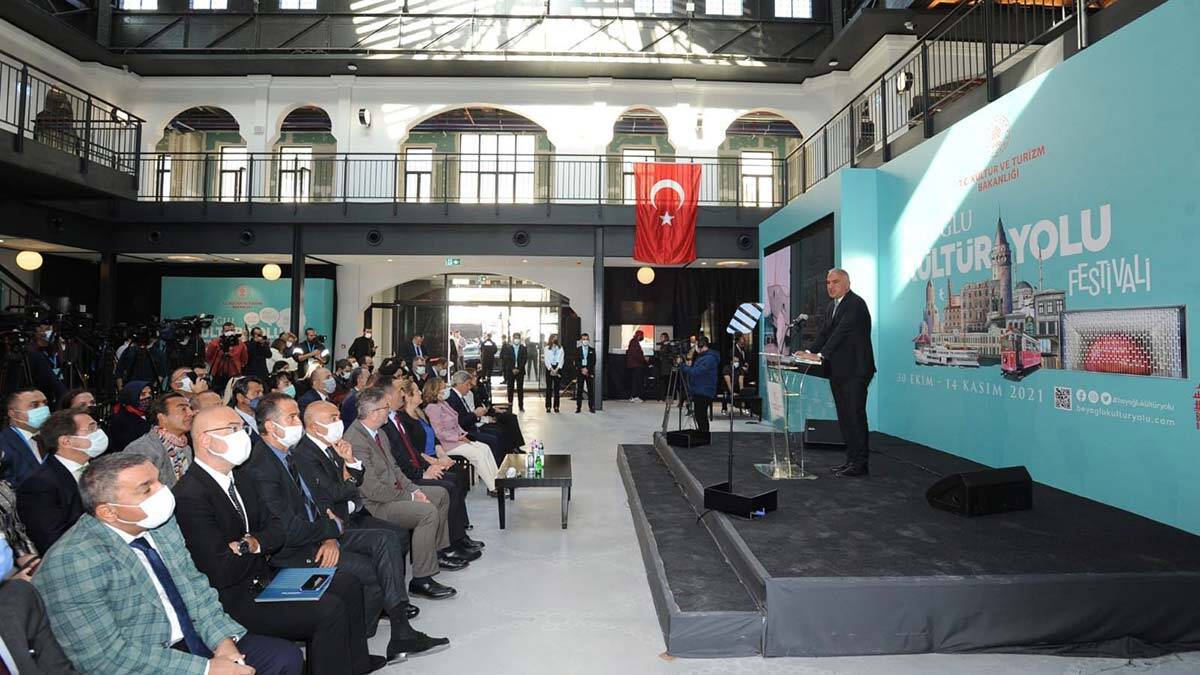 Beyoğlu Kültür Yolu Festivali’nin tanıtım toplantısı Kültür ve Turizm Bakanı Mehmet Nuri Ersoy’un katılımıyla Galataport İstanbul’da gerçekleştirildi. Ersoy, festivalin 29 Ekim ile 14 Kasım tarihleri arasında düzenleneceğini söyledi.