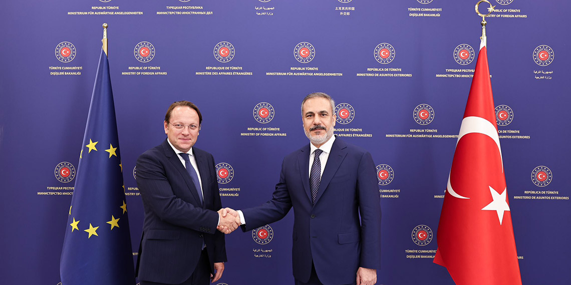 Dışişleri Bakanı Hakan Fidan, AB Komisyonunun Genişlemeden Sorumlu Üyesi Oliver Varhelyi ile bakanlıkta bir araya geldi. Görüşmenin ardından ortak basın toplantısı düzenlendi. Avrupa ve tüm dünyanın çeşitli sınamalarla karşı karşıya olduğu süreçten geçildiğini ifade eden Bakan Fidan, böyle bir dönemde Türkiye-AB ilişkilerinin sağlıklı zeminde ilerletilmesinin her zamankinden daha da önemli hale geldiğini söyledi.