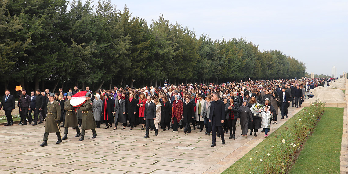 Bakan Göktaş’ın başkanlık ettiği heyette, TBMM Kadın Erkek Fırsat Eşitliği Komisyonu Başkanı Çiğdem Erdoğan Atabek, AK Parti Grup Başkanvekili Özlem Zengin, kadın milletvekilleri, muhtarlar, rektörler, akademisyenler, sivil toplum kuruluşları temsilcileri ve kamu çalışanları yer aldı. Heyet, Aslanlı Yol’dan yürüyüp Atatürk’ün mozolesine çıktı. Mozoleye çelenk bırakılmasının ardından heyet, Misak-ı Milli Kulesi’ne geçti. Anıtkabir Özel Defteri’ni imzalayan Göktaş, şunları yazdı: