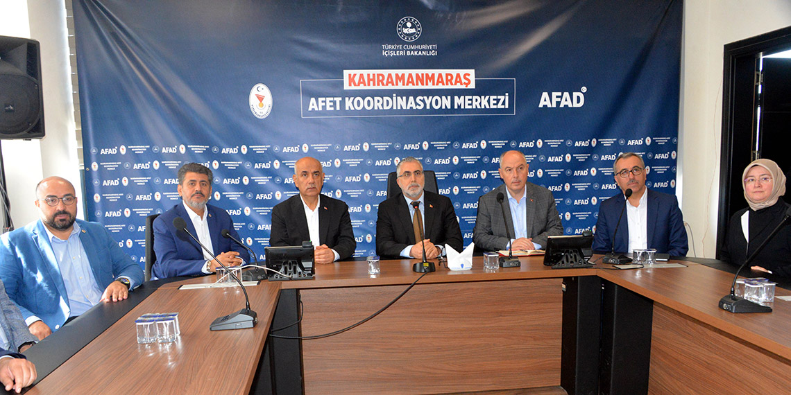 Bir dizi ziyaret ve incelemelerde bulunmak üzere Kahramanmaraş’a gelen Çalışma ve Sosyal Güvenlik Bakanı Vedat Işıkhan afet koordinasyon merkezini ziyaret etti. Kahramanmaraş Valisi Ömer Faruk Coşkun, milletvekilleri, Büyükşehir Belediye Başkanı Hayretin Güngör’ün de eşlik ettiği Bakan Işıkhan, depremden bugüne kadar şehirde yapılan çalışmalar hakkında brifing aldı