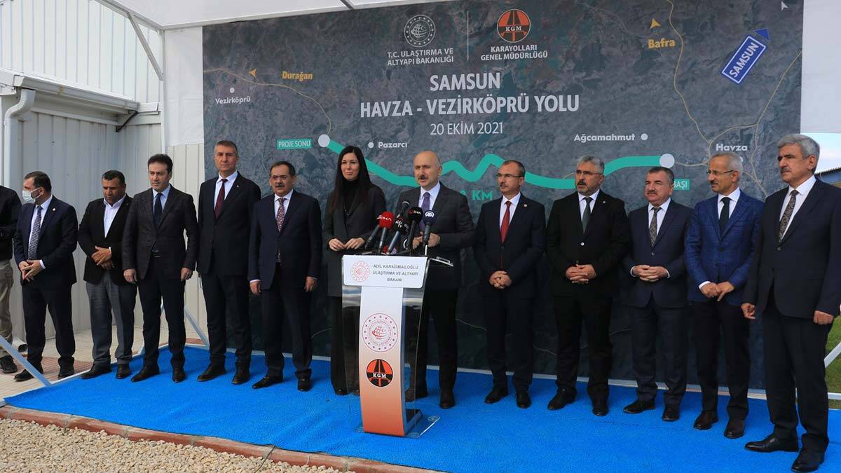 Bir dizi ziyaret ve açılışlar için Samsun’a gelen Ulaştırma ve Altyapı Bakanı Adil Karaismailoğlu, ilk olarak Havza-Vezirköprü kara yolu şantiyesini ziyaret etti, çalışmalar hakkında bilgi aldı. Daha sonra basın açıklaması yapan Bakan Karaismailoğlu, “Türkiye her anlamda geleceği parlak, büyümek için çok çalışan bir ülkedir. Artan ekonomik potansiyelimizin gereğini yerine getirmek, ulaşımın tüm modlarında, insan ve yük taşımacılığındaki iddiamızı artırmak üzere var gücümüzle çalışıyoruz. Gerek ulaştırma gerekse haberleşme alanında hem milletimizin daha iyi yarınları için hem de küresel bir lojistik süper güç olabilmek için yatırımlarımıza aralıksız devam ediyoruz” diye konuştu.