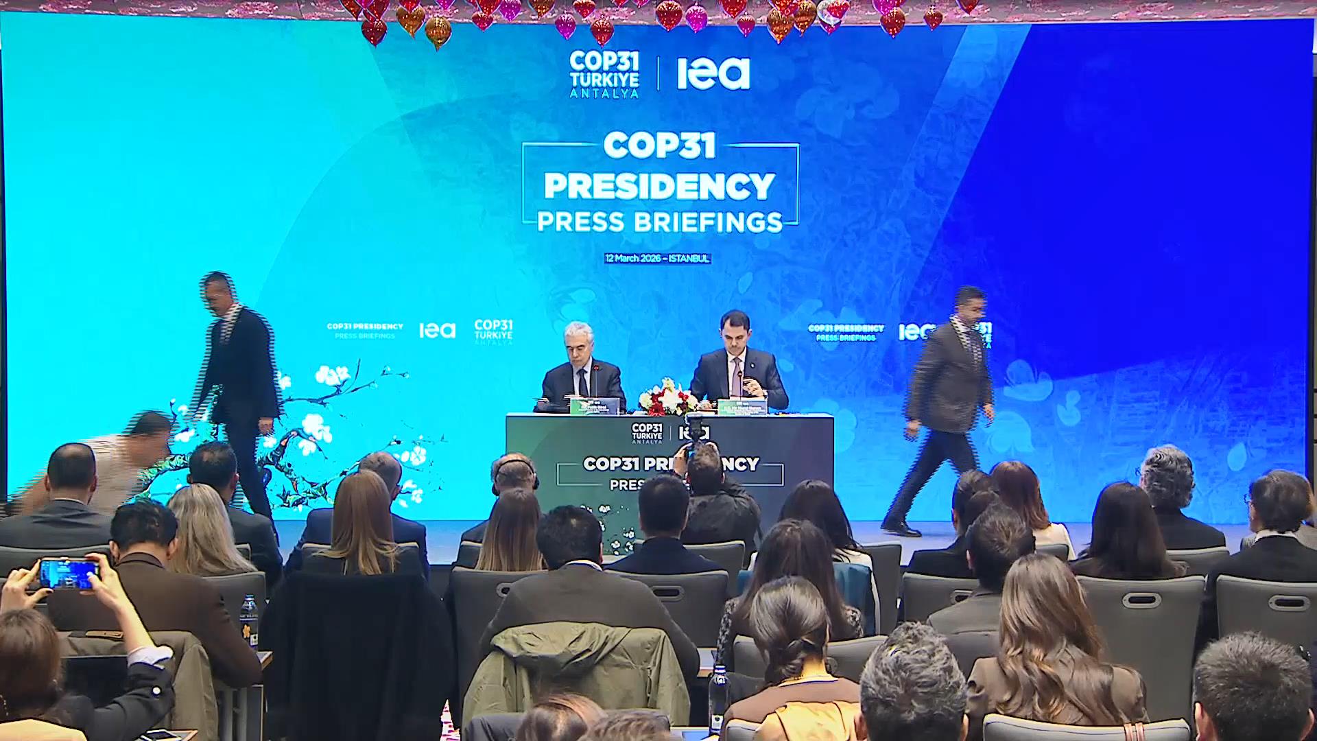 Çevre Şehircilik ve İklim Değişikliği Bakanı Murat Kurum COP31 Başkanlığı sürecine ilişkin düzenlenen basın toplantısında konuştu. Toplantıya Uluslararası Enerji Ajansı Başkanı Fatih Birol ve davetliler katıldı. Bakan Kurum konuşmasında "Bugün dünyanın, özellikle son dönemde en önemli konusu enerjinin ve iklim politikalarının kesiştiği bir eşikteyiz. Son yıllarda yaşanan jeopolitik gelişmeler ve çatışmalar, enerji arz zincirinin kırılganlığını bir kez daha ortaya koymuş, enerji güvenliği yeniden stratejik bir öncleik haline gelmiştir ki, bugün yaşadığımız savaşlar bunu net bir şekilde göstermektedir. Bu noktada Uluslararası Enerji Ajansı enerj güvenliği ve dönüşümü alanında belirleyici bir rol üstlenmiş ve bu alanda çok kritik bir referans haline gelmiştir. Enerji alanında olduğu gibi iklim krizinde de kritik bir eşikte bulunuyoruz. Dünyamız yaşadığımız orman yangınları kuraklık su stresi biyolojik çeşitlilik kaybı gıda ve enerji sistemleri üzerinde baskılarla kaşrı karşıya " dedi.