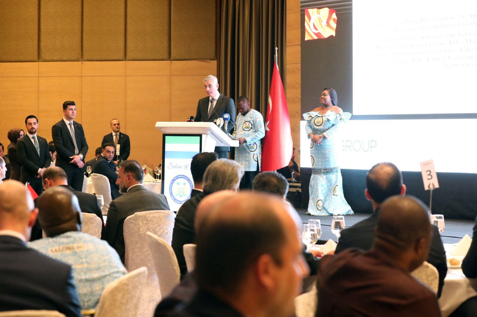 Memişoğlu, Sierra Leone'yi Batı Afrika'daki önemli ortaklardan biri olarak gördüklerini belirterek, "Sierra Leone ile ilişkilerimizi her alanda ortak fayda çerçevesinde daha da ileriye taşımaya kararlıyız. Diplomatik misyonlarımızın karşılıklı olarak faaliyete geçmesi ve vize süreçlerinin hızlanmasıyla ticaret hacmimiz ivme kazanmıştır. Ancak inanıyoruz ki iki dost ülkenin potansiyeli mevcut ticari rakamların çok ötesindedir. Türk firmalarının Sierra Leone'nin kalkınma hamlesine enerji, havalimanı işletmeciliği, lojistik ve altyapı yatırımlarıyla doğrudan katkı sağlamasından büyük memnuniyet duyuyoruz" diye konuştu.