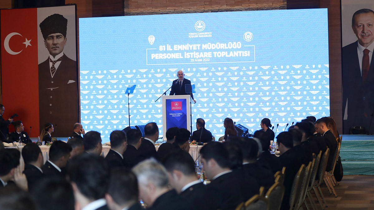 Dünyada genel bir güvenlik sorunu olduğunu söyleyen Bakan Soylu, “Türkiye’de bundan elbette ki etkilenmektedir. Etrafımızdaki coğrafyayı iyi biliyorsunuz; Irak’tan Suriye’ye, Yemen’den Libya’ya, Afganistan’dan Pakistan’a kadar etrafımızdaki coğrafyada yaşananların bize etkilerini, günlük hayatımızda yaşıyoruz. Haliyle bu durum tüm iç güvenlik birimlerimizin yükünü artırıyor. Bugün polisimiz de jandarmamız da sahil güvenliğimiz de 20 yıl öncesinden çok daha yüksek bir tehdit ortamıyla karşı karşıya. Suçun hem miktarı hem de çeşidi artmaktadır. Eskiden ‘siber suç’ diye bir şey yoktu ama bugün var. Teröristler bomba eğitimlerini ‘Youtube’ üzerinden alıyorlar. En son İstiklal Caddesi’ndeki patlama da bunun en bariz örneklerinden birisi” diye konuştu.