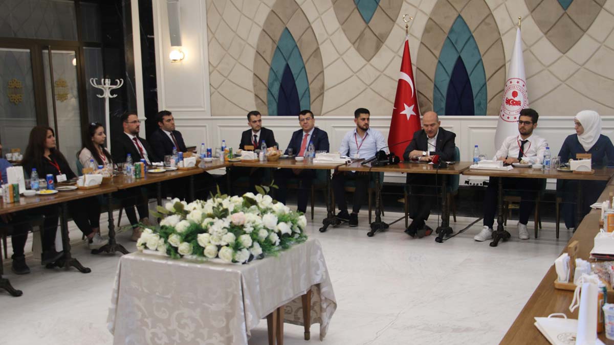 İçişleri Bakanı Süleyman Soylu, Türkiye’nin çeşitli üniversitelerinde, bölümlerini dereceyle tamamlayan 21 Suriyeli öğrenciyi kabul etti. Soylu, sohbet ettiği öğrencileri başarılarından dolayı tebrik etti. Öğrenciler de eğitimleri ve aileleriyle ilgili bilgi verdi. Suriye’de 2011’de başlayan olaylardan sonra insanların Türkiye’ye sığındığını belirten Bakan Soylu, “O dönemde savaşın ne noktaya gideceği konusunda kimsenin bir bilgisi yoktu.