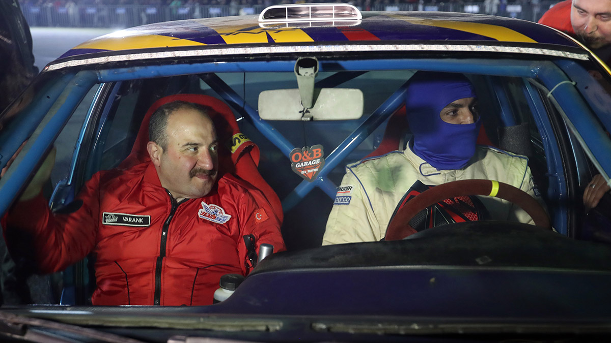 Bursa Yunuseli Havalimanı’nda motor tutkunlarıyla bir araya gelen Sanayi ve Teknoloji Bakanı Mustafa Varank, drift pilotu Deniz Dursun’un kullandığı Togg ile drift drift attı.