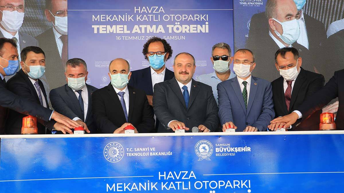 Samsun’a gelen Sanayi ve Teknoloji Bakanı Varank, 340 araçlık Havza mekanik otoparkının temel atma törenini gerçekleştirdi. Törende Vali Zulkif Dağlı, Samsun Milletvekili Orhan Kırcalı, Büyükşehir Belediye Başkanı Mustafa Demir de yer aldı. Törende konuşan Bakan Varank, “Her gelişimde Samsun’un daha da geliştiğini görmekten büyük memnuniyet duydum ancak biz yaptığımız bunca yatırımı bile vatan söz konusu olduğunda gerisini teferruat olarak gören vatanperver Samsunlu kardeşlerimiz için yeterli görmüyoruz.