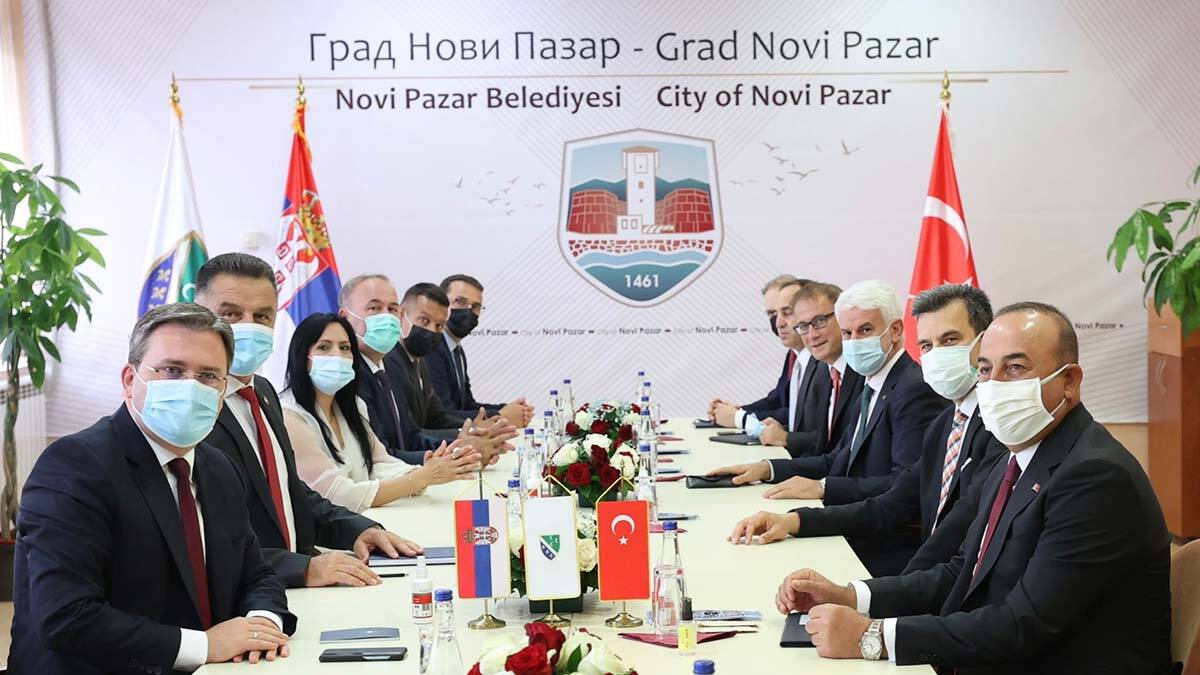 Dışişleri Bakanı Mevlüt Çavuşoğlu, resmi temaslarda bulunmak üzere geldiği Sırbistan’ın Yeni Pazar kentinde Türk Kültür Merkezi’ni ziyaret etti ve Yeni Pazar Belediye Başkanı Nihat Bişevac ile görüştü.
