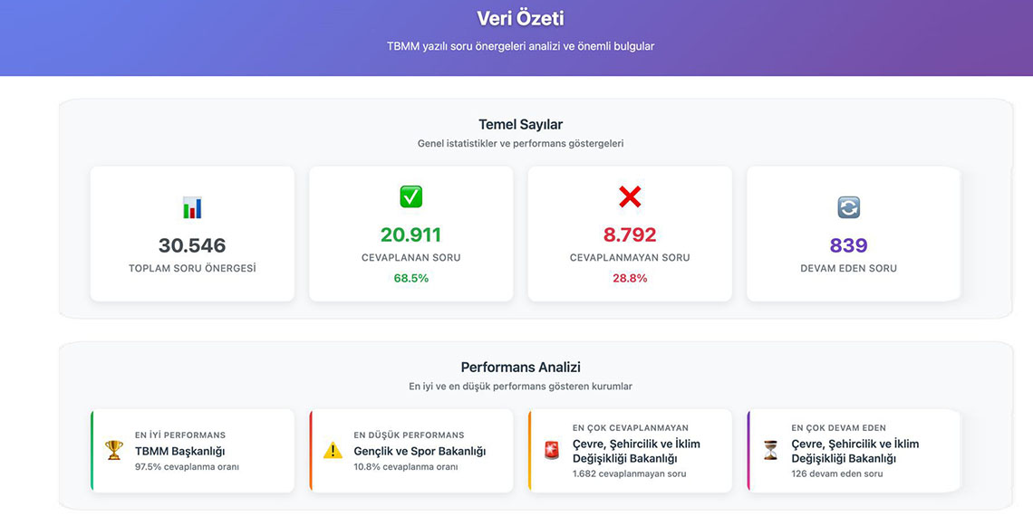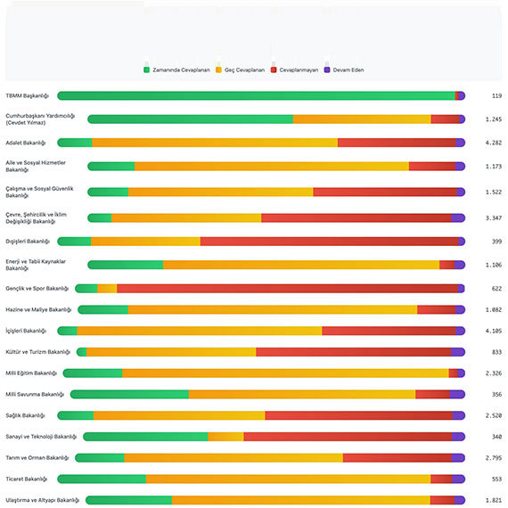 30 bin 546 önerge verildi, 16 bin 908’i yasal süre geçtikten sonra cevaplandı, 8 bin 792’si yanıtsız bırakıldı