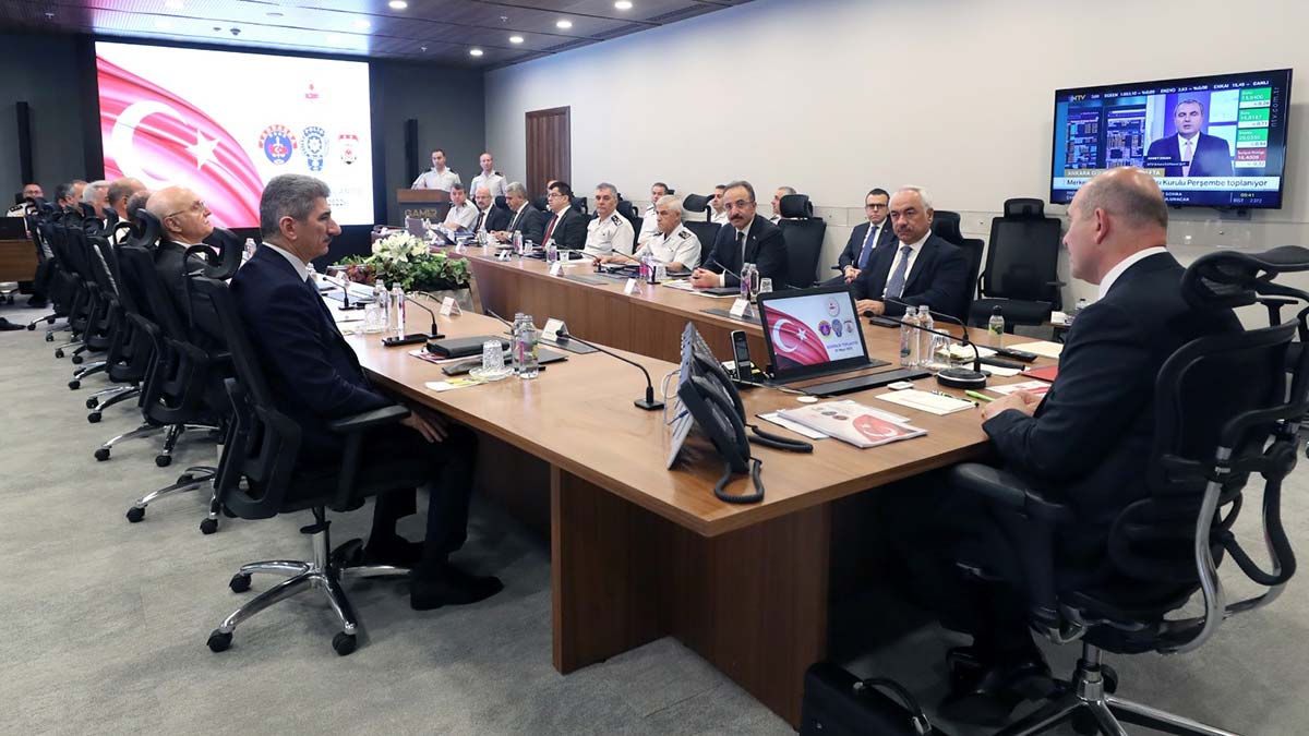 Güvenlik ve Acil Durumlar Koordinasyon Merkezi’nde (GAMER) düzenlenen toplantıya, İçişleri Bakanı Süleyman Soylu, Bakan Yardımcıları İsmail Çataklı, Mehmet Ersoy, Muhterem İnce, Tayyip Sabri Erdil, Emniyet Genel Müdürü Mehmet Aktaş, Jandarma Genel Komutanı Orgeneral Arif Çetin, Sahil Güvenlik Komutanı Tümamiral Ahmet Kendir katıldı.