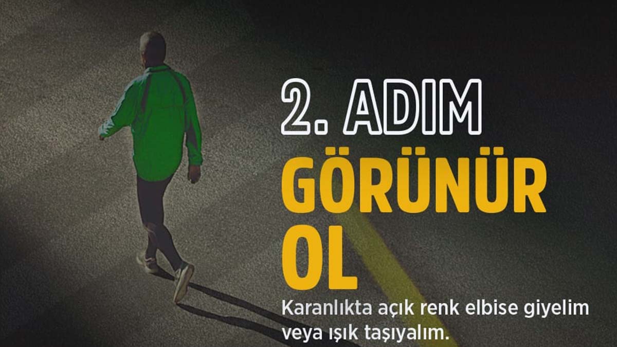 www.trafik.gov.tr adresi üzerinden temin edilen ‘Yayalar İçin 5 Adımda Güvenli Trafik’ mottosu görselleri billboardlarda ve sosyal medya platformları başta olmak üzere yerel, ulusal basın yayın organları, kamu kurum ve kuruluşları, vatandaşların yoğun olarak bulunduğu alanlar (otogar, havalimanı, AVM, otobüs, metro durakları ve benzeri) ve kurumsal iletişim sayfaları ve benzeri yerlerde kullanılacak ve asılacak.