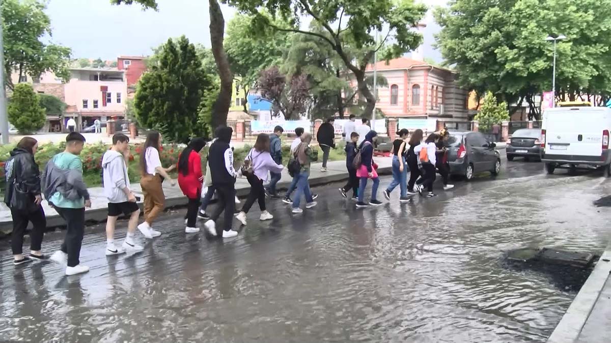 İstanbul’da bazı ilçelerde aralıklarla yağmur etkili oluyor. Balat’ta aniden bastıran yağmur nedeniyle yol su ile doldu. Ayvansaray Caddesi’nde sürücüleri göle dönen yolda ilerlemekte zorluk çekti. Tramvay istasyonunun hemen yanındaki trafik ışıklarından yolun karşısına geçmek isteyenler ıslanmaktan kurtulamadı. Caddede asfaltlama çalışması sırasında bastıran yağmur nedeniyle rögar kapaklarının yüksekte kaldığı ve suyun tahliye olmadığı belirtildi.