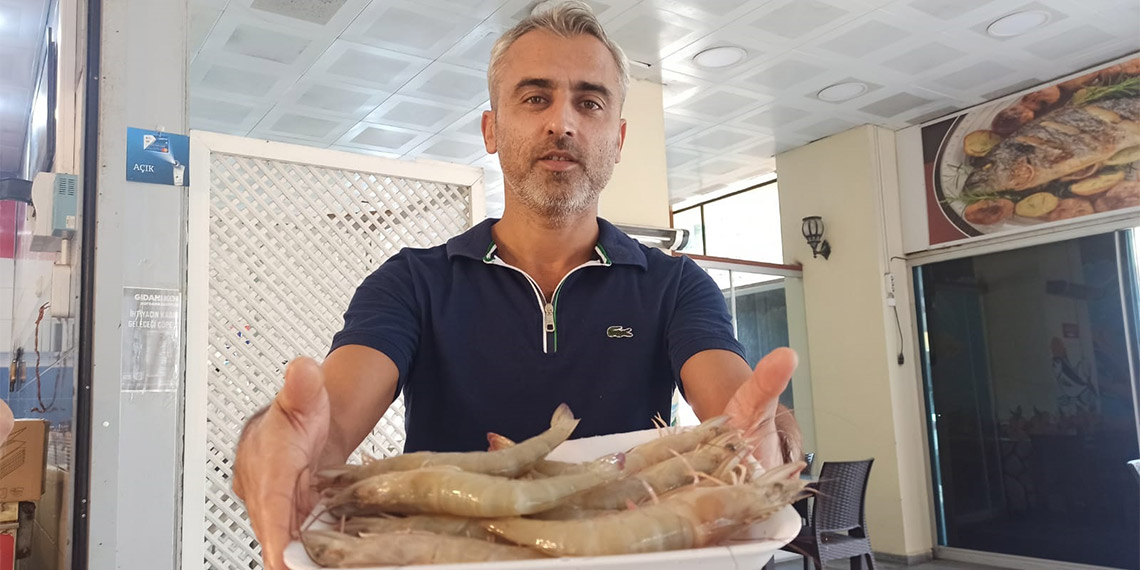 Hatay’ın İskenderun Körfezi’nde balık tezgahları jumbo karides ile doldu, fiyatı 800 TL’den 600 TL’ye kadar düştü.