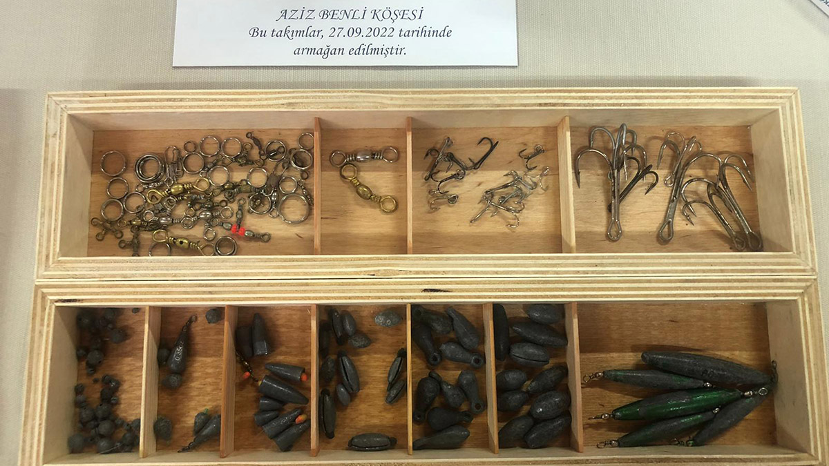 Eskiden kılıç tutarlarmış, Ada’ya gidip uskumru tutarlarmış. Boğaziçi’nde ağlarla tutulan çinakoplar, pisi balıkları gibi her türlü dip balığı var. Ağcılık yapılan ve oltayla tutulan balıklar var, olta balıkçılığı benim ilgimi çektiği için burada olta balıklarının takımlarını sergilemeye çalıştım. 60-70 ve 100 seneye yakın olta kutuları var. Yine 100 seneye yakın mazisi olan oltalar var. 15 sene profesyonel balıkçılık yaptım, o döneme ait takımlarımız var. Dolayısıyla bu iş böyle bir sergi amacına dönüştü. Fakat sergilemenin ve bunların bir arada tutulma problemi vardı.